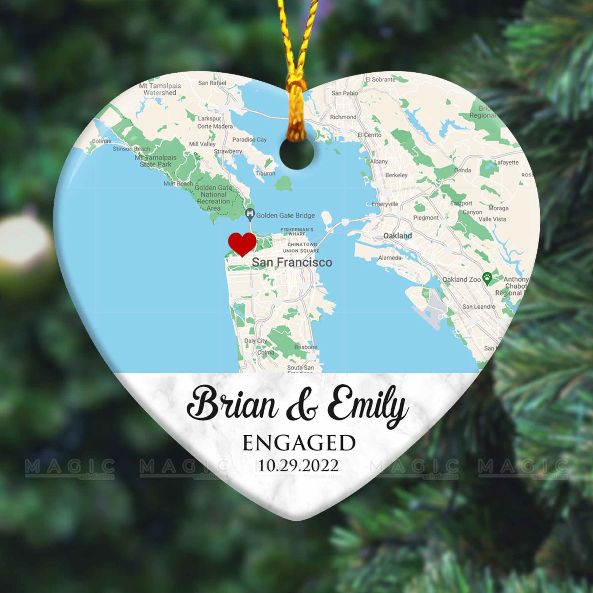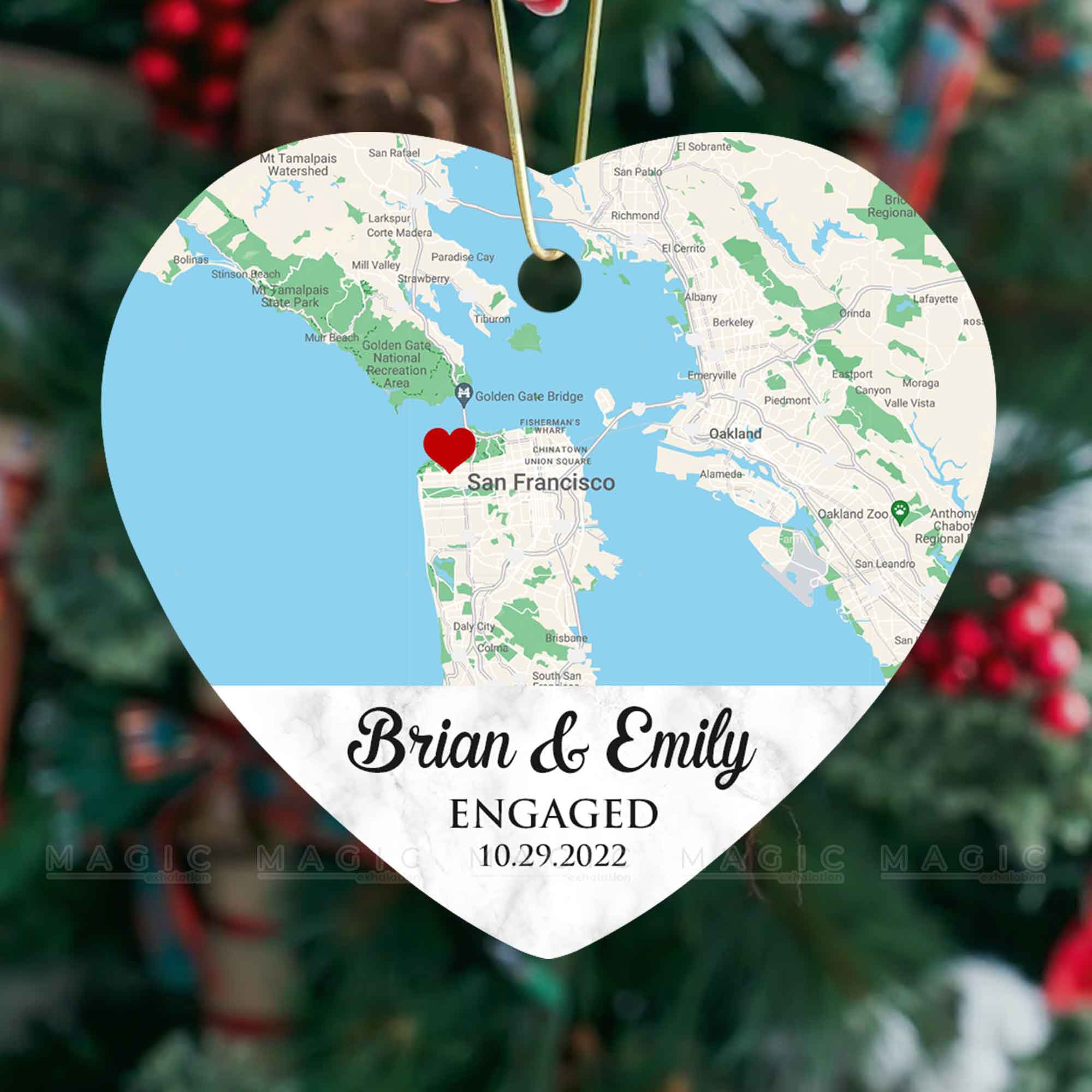Custom Map Engagement Ornament for Christmas 2023, First Christmas Married Gifts for Couple, Gifts for a First Christmas Together