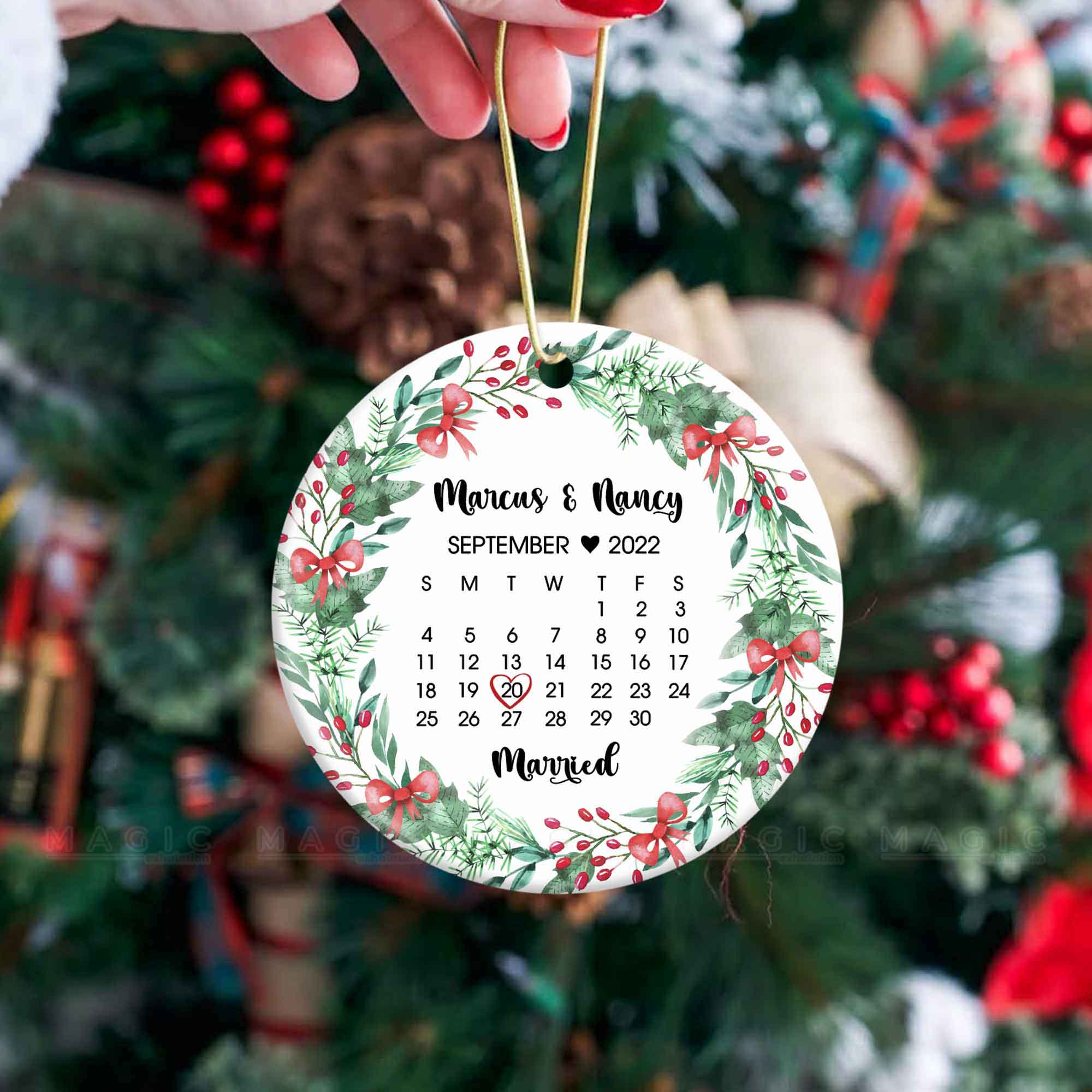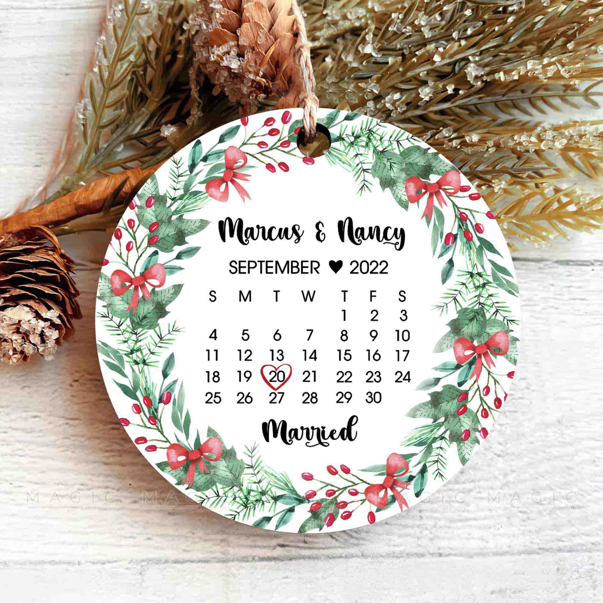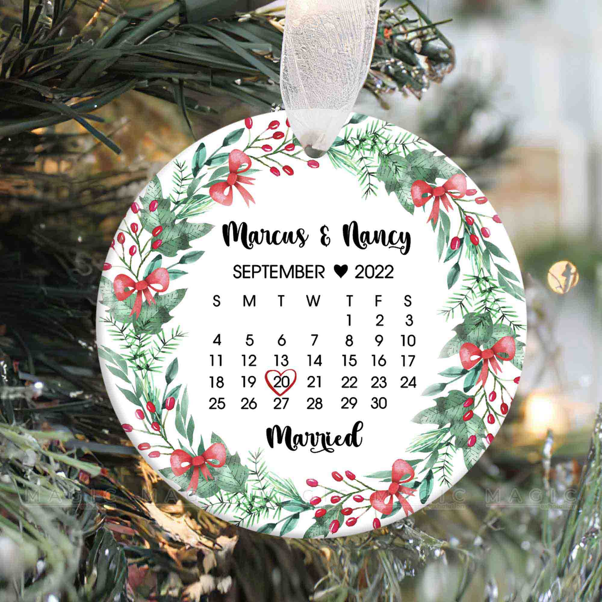 Giving a Personalized Christmas Ornament to the one you love is a sweet gesture that shows thoughtfulness and care, especially Engagement Ornaments for a couple. First Christmas Married Ornament | Magic Exhalation