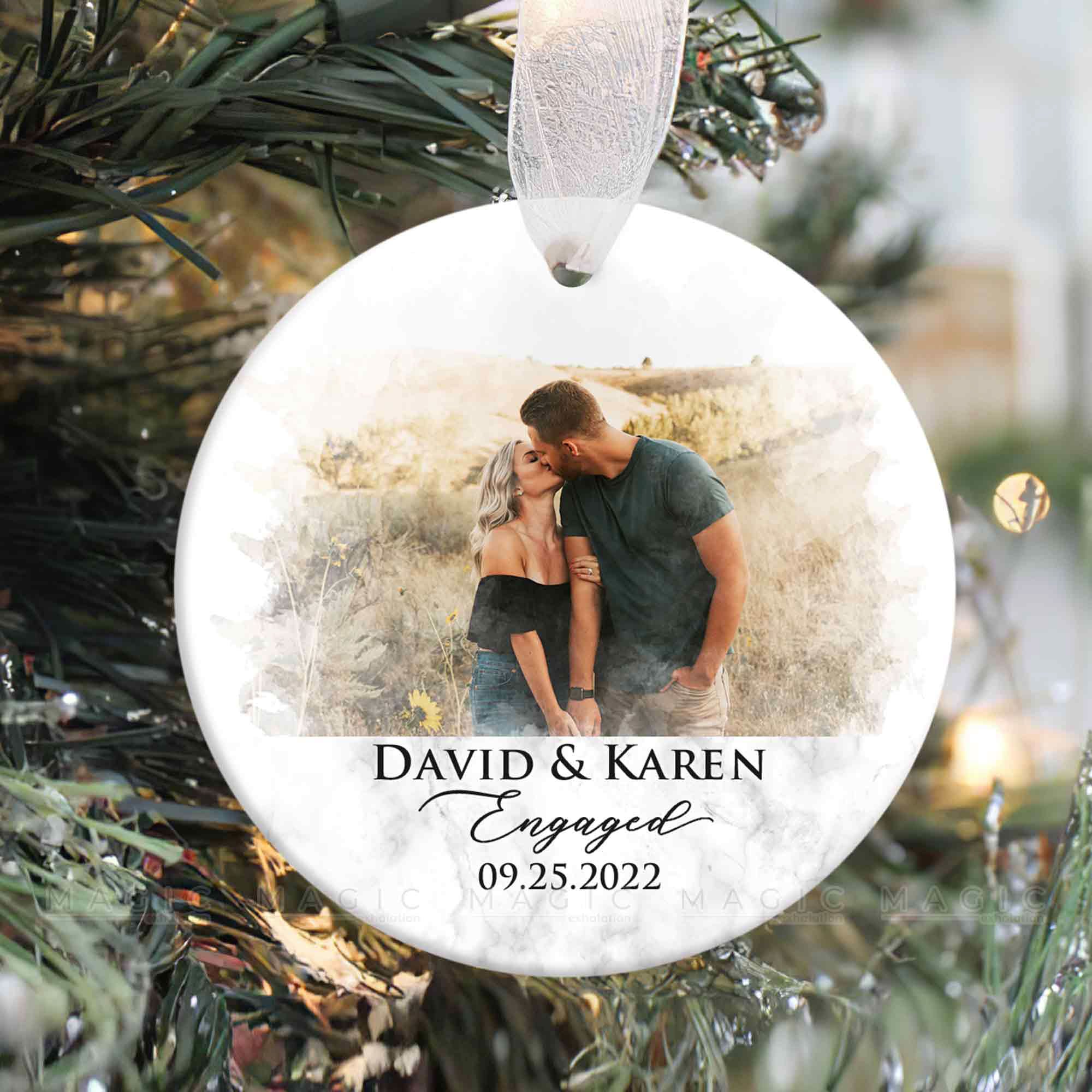 These personalized engagement ornaments can be customized with the couple's names and wedding date, or even include a picture of the happy couple. Whether hanging on the Christmas tree or displayed year-round in the home, personalized engagement ornaments make for a unique and thoughtful gift. And with so many options available in terms of design and customization, there is sure to be an ornament perfectly suited for any couple's style and taste.