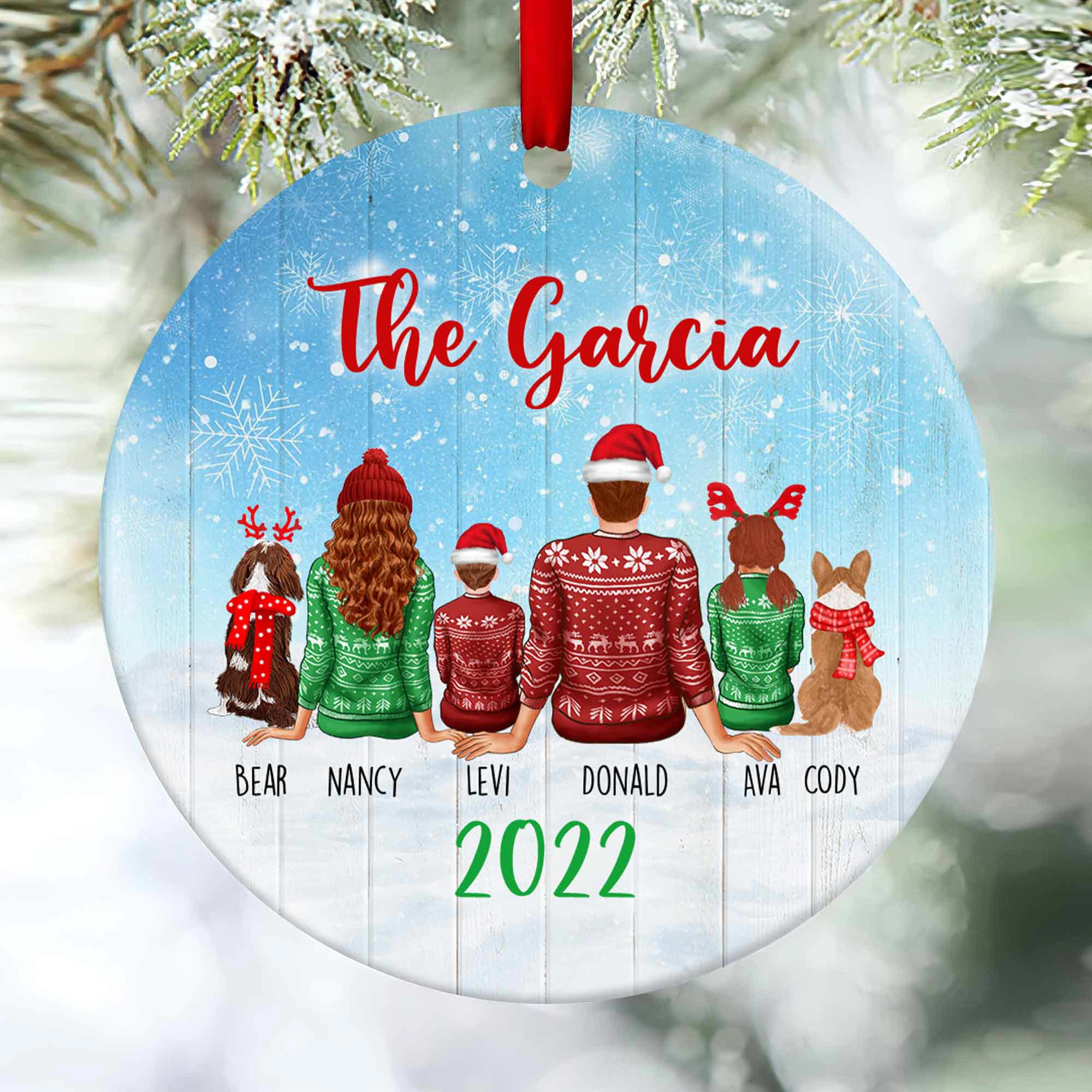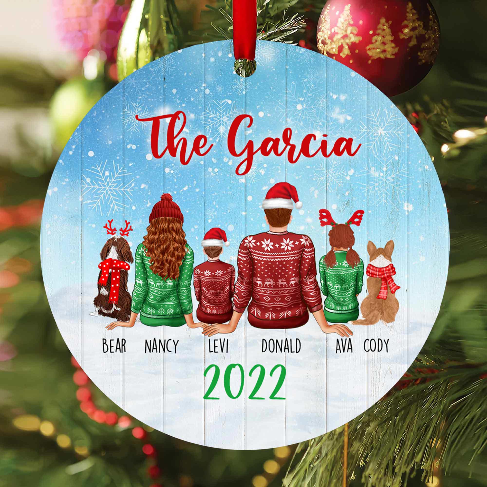 Made of high-quality materials and featuring a beautiful design, these family ornaments with pets are sure to please. And what makes it even more special is that it can be personalized with your loved one's name, image, or beautiful clipart.