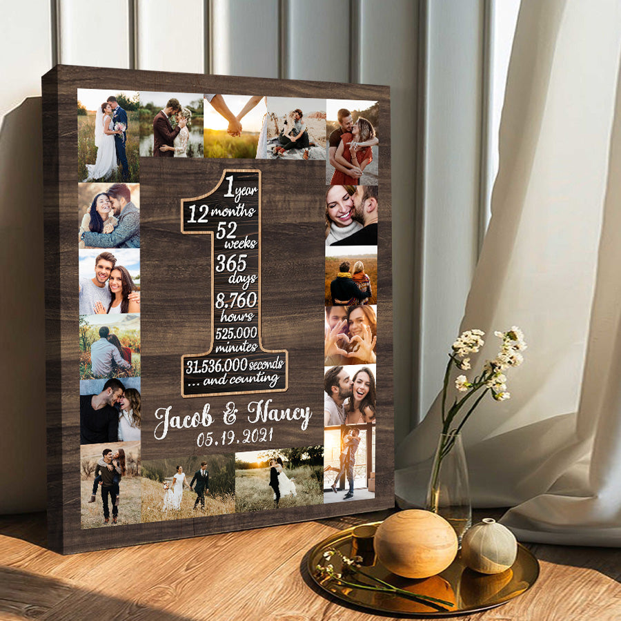 Unlike traditional 1 year anniversary gift | first anniversary gift | personalized canvas prints anniversary like jewelry or flowers, a custom canvas lets you celebrate your relationship in a creative way she can enjoy for years. By selecting meaningful photos from your time together, an anniversary canvas becomes a heartfelt artistic representation of the memories you've built.