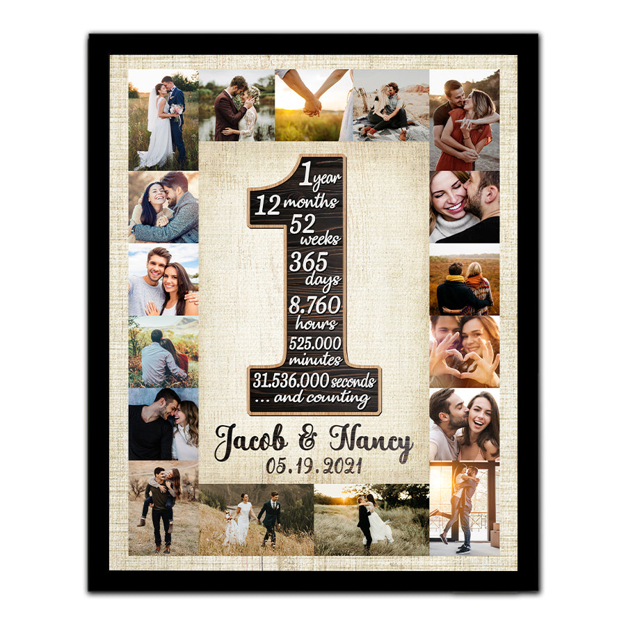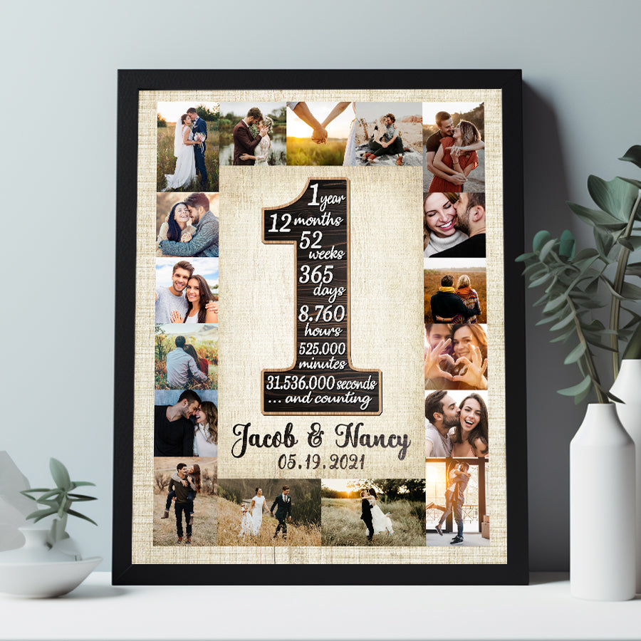 Just picture the excitement on your partner's face when they get this 1 year anniversary gift for boyfriend | first anniversary gift for him custom photo collage that celebrates the experiences and achievements you two have shared over the last year. It stands for your commitment to, love for, and dedication to one another. The great journey you two have completed together and the adventures yet to come are both recalled by this poster.