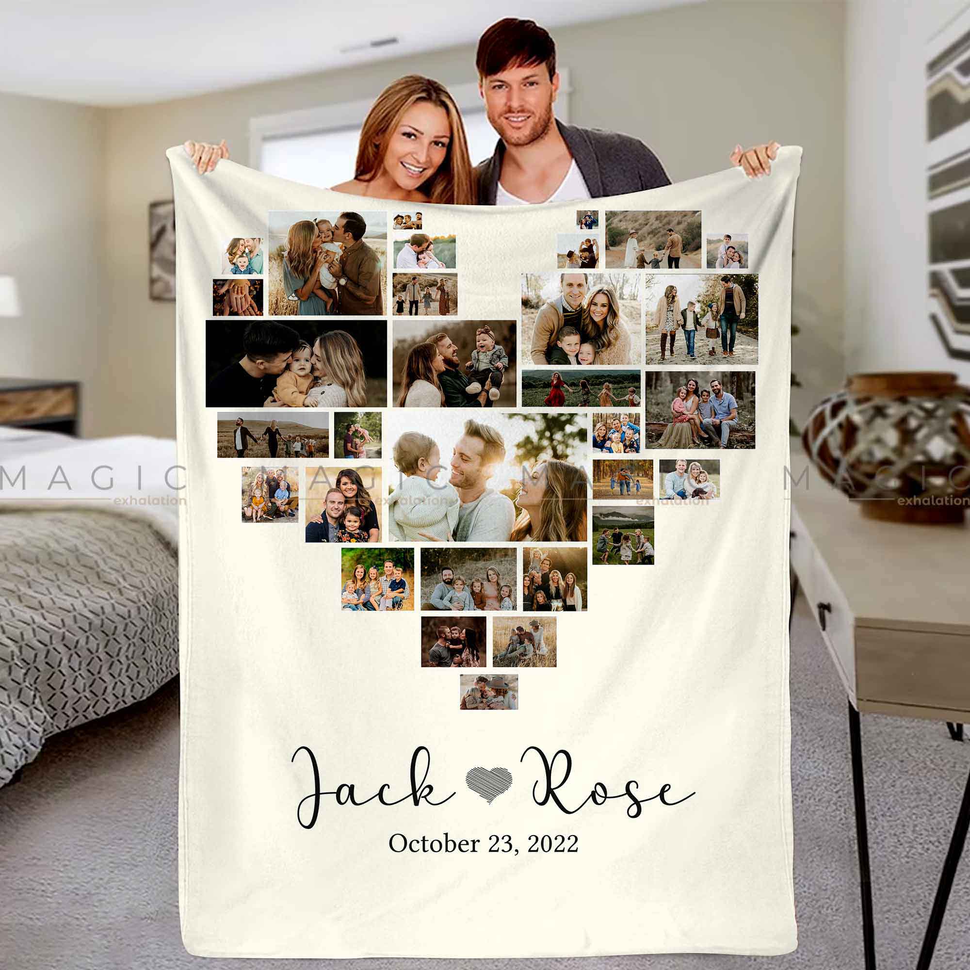 1 year anniversary gifts are what lovers choose to give on special first anniversary. This 1 year wedding anniversary gifts for him | magic exhalation blanket is one of special anniversary gifts with custom collage picture in heart shape, it is sure a one-of-a-kind gift for the other half!