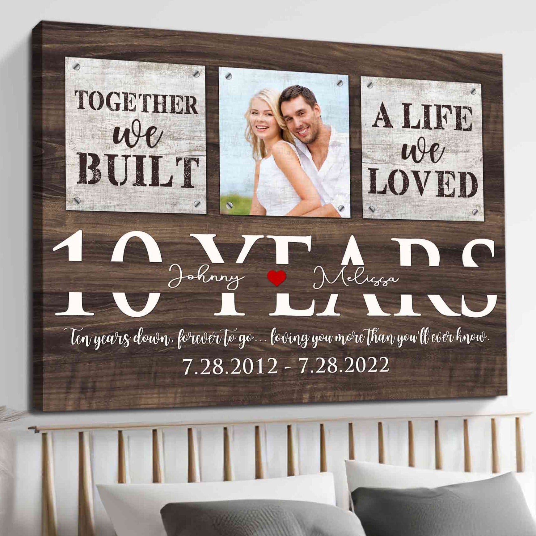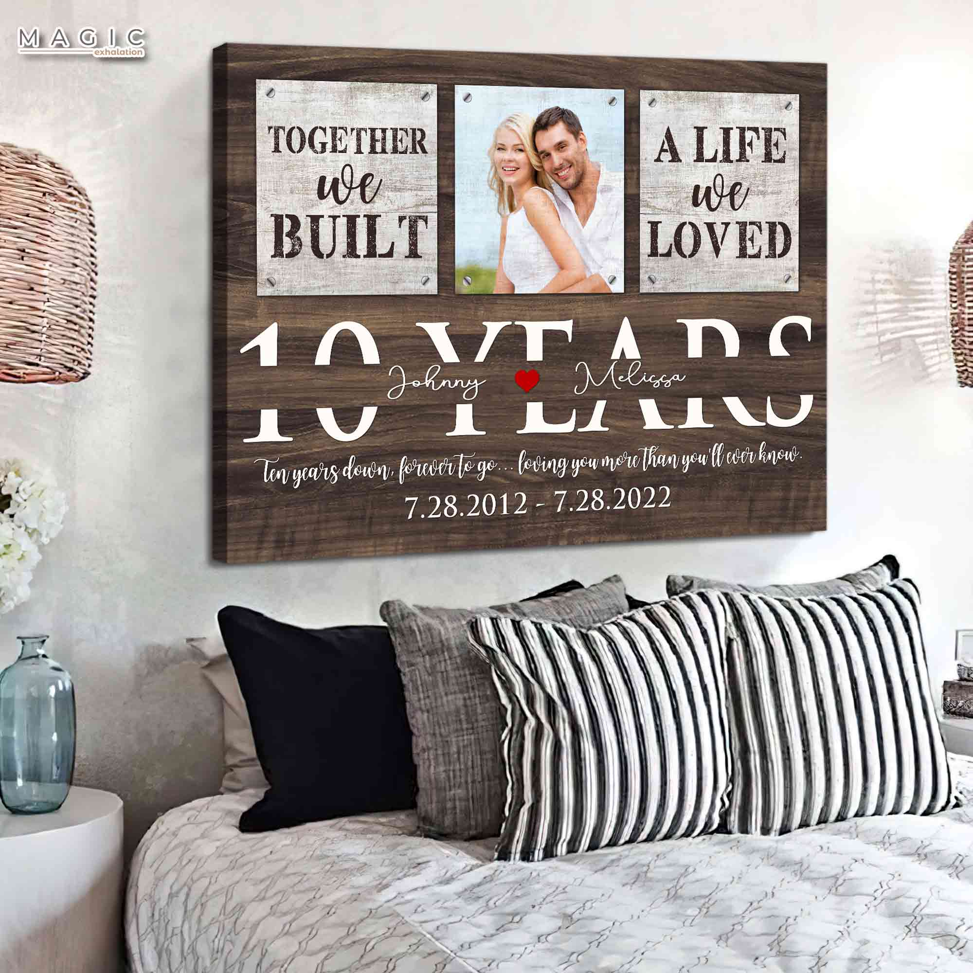 Marriage is something that will go with you throughout your entire life, it's worth spending your time, and your money finding a unique and personalized gift for your loved one on this day. No regret picking this 10 year anniversary gift for him canvas, buy now and apply "SAVE$5" for a discount of $5!