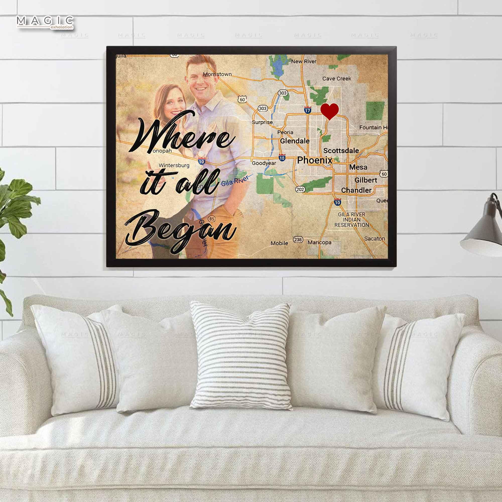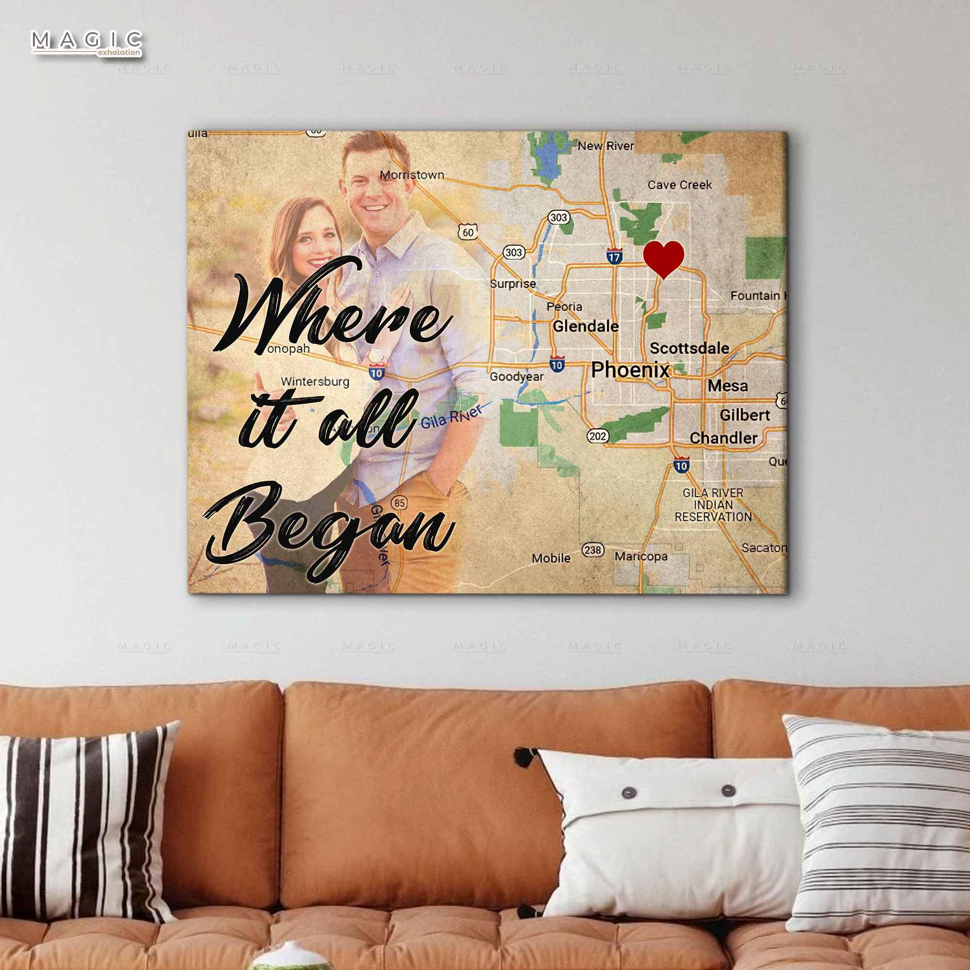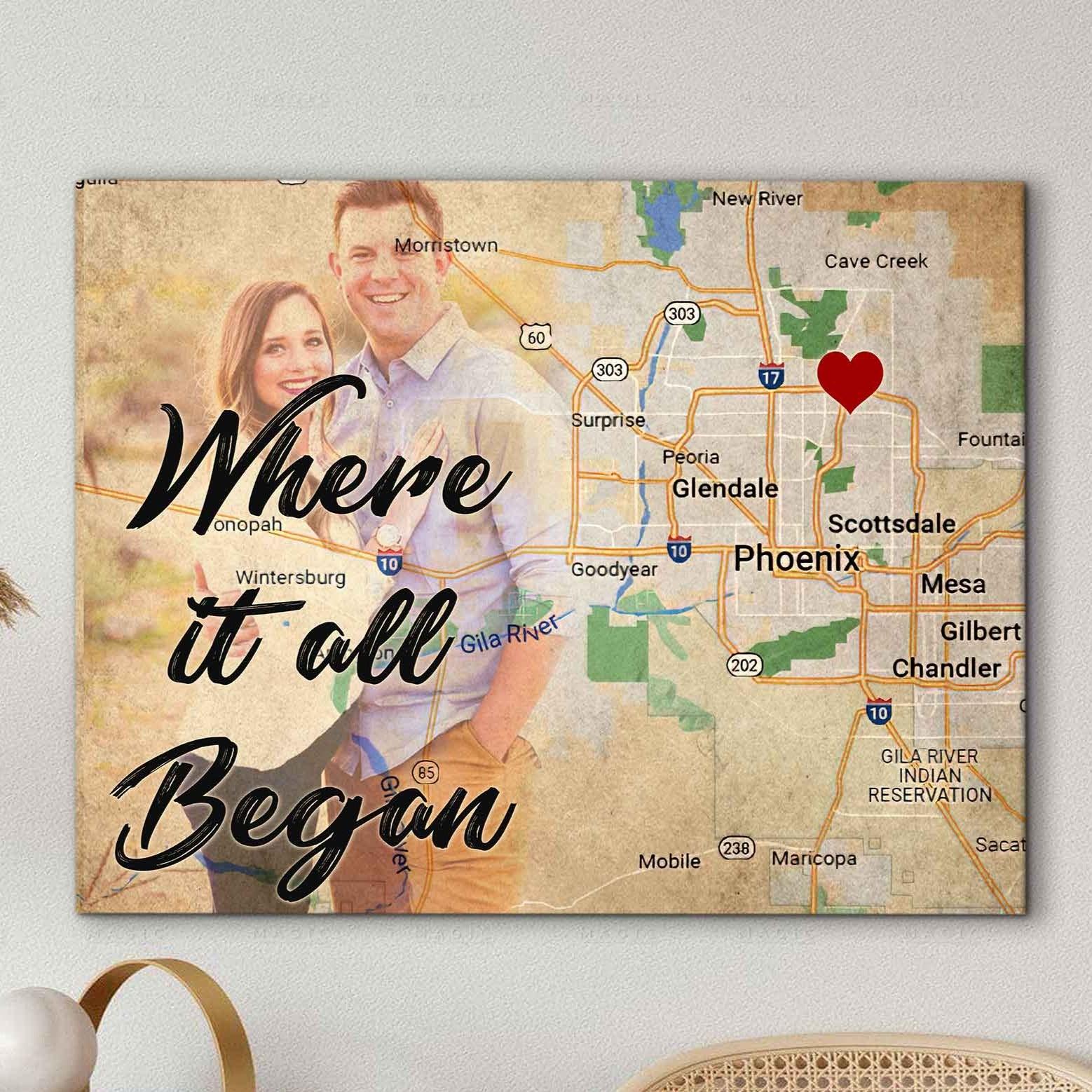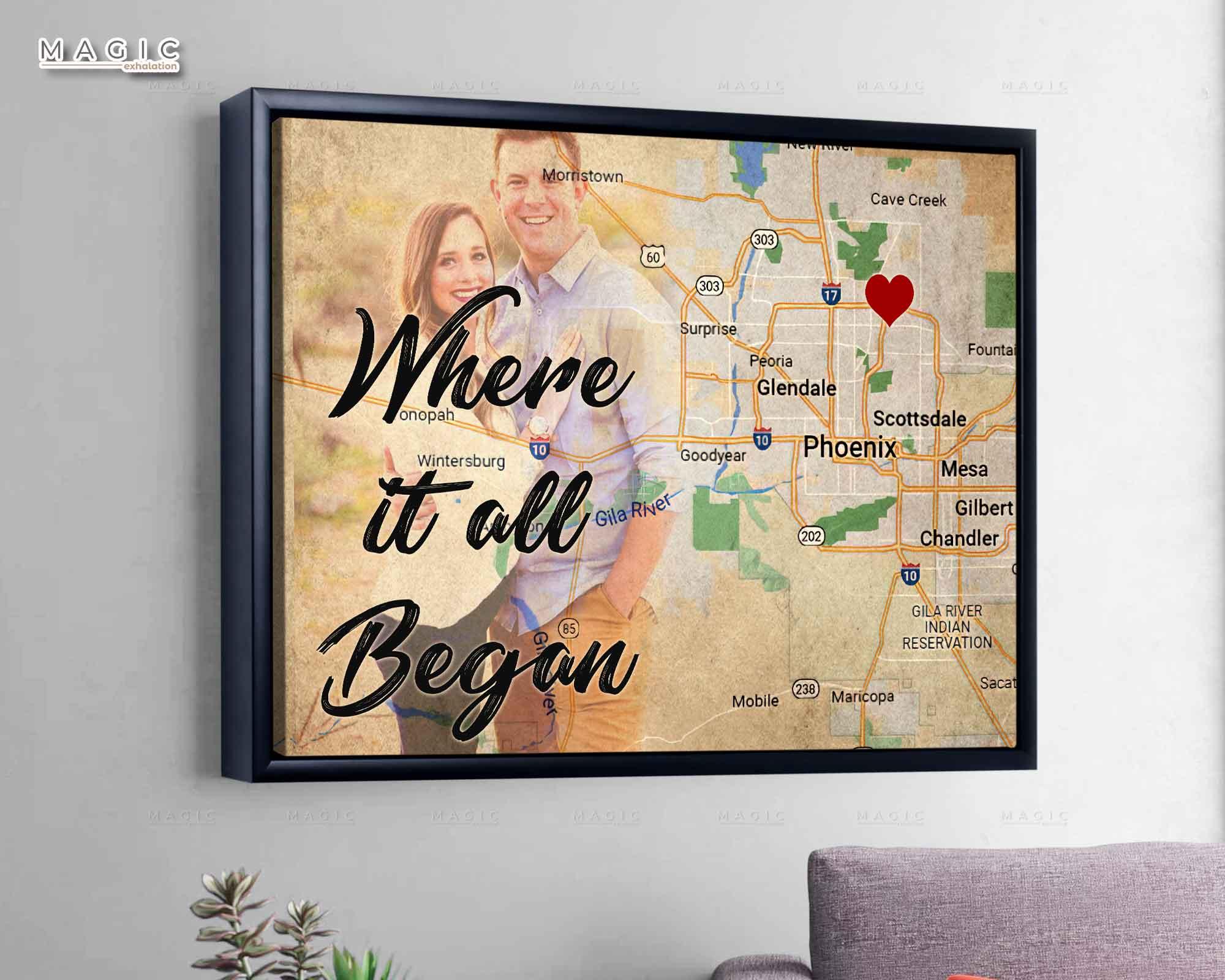 10th Anniversary Gift Where It All Began, 10th Wedding Anniversary Gift For Him Canvas Wall Art, Best Anniversary Gifts For Her Him.