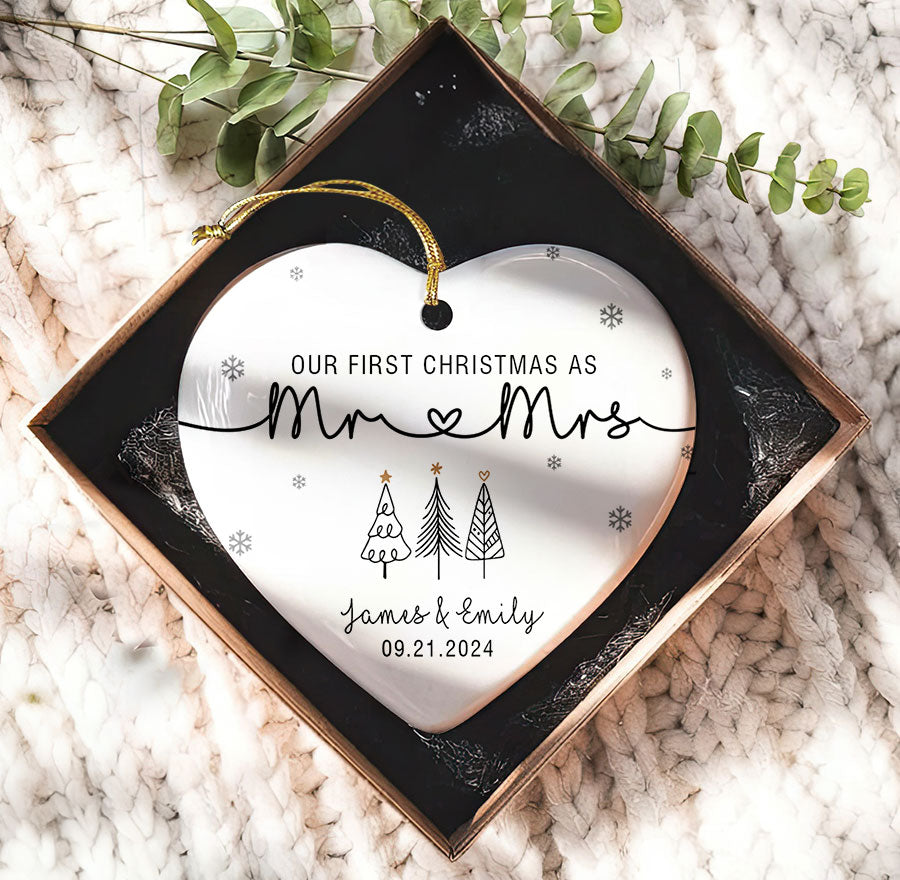 This holiday season, our 1st christmas as mr and mrs ornament | custom our first christmas as mr & mrs ornament | magic exhalation is the perfect way to honor your first Christmas as a married couple.