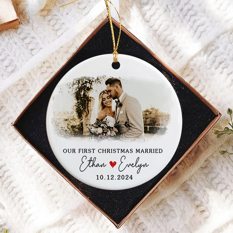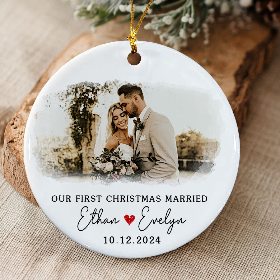 First Christmas Married Ornament | Wedding Christmas Ornament With Custom Photo | Circle Ceramic Ornament