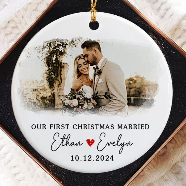 First Christmas Wedding Ornament | Wedding Christmas Ornament With Custom Photo | Circle Ceramic Ornament