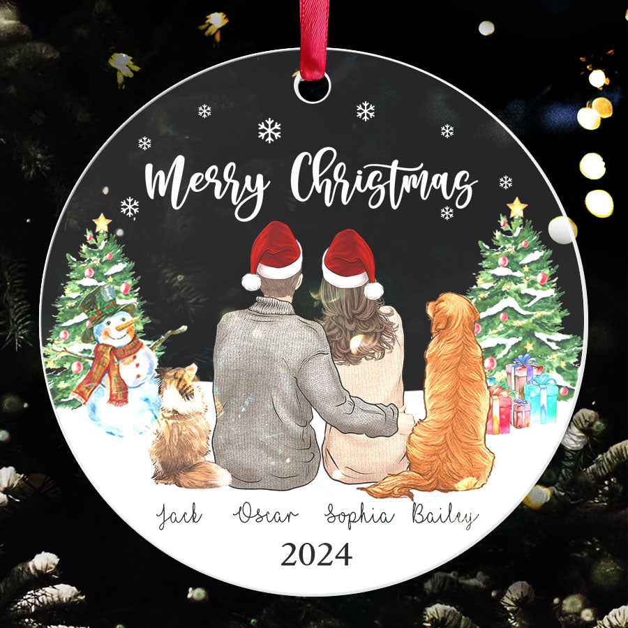 Our First Christmas Ornament | Personalized Christmas Couple Acrylic Ornament With Dogs | Circle Shape