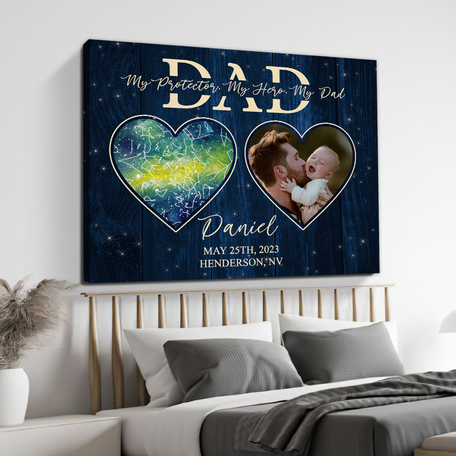 First Time Dad Fathers Day Gift | Canvas For Dad | Custom Night Star Map