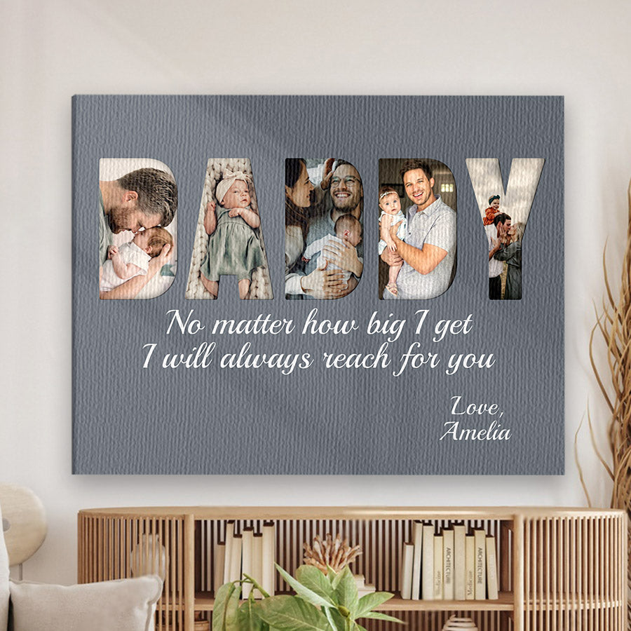 Treat the new dad in your life to 1st fathers day gift | 1st time fathers day gift | first daddy day gift that commemorates the baby's arrival and his first Father's Day. Our personalized photo canvas is sure to bring a smile seeing little ones grow up before their eyes. Customize it FREE now - he will love displaying this treasured memory for many years to come.