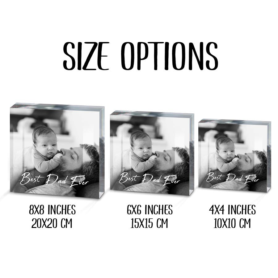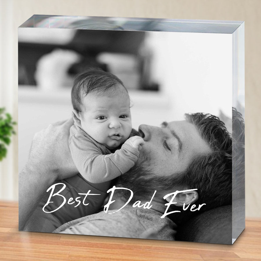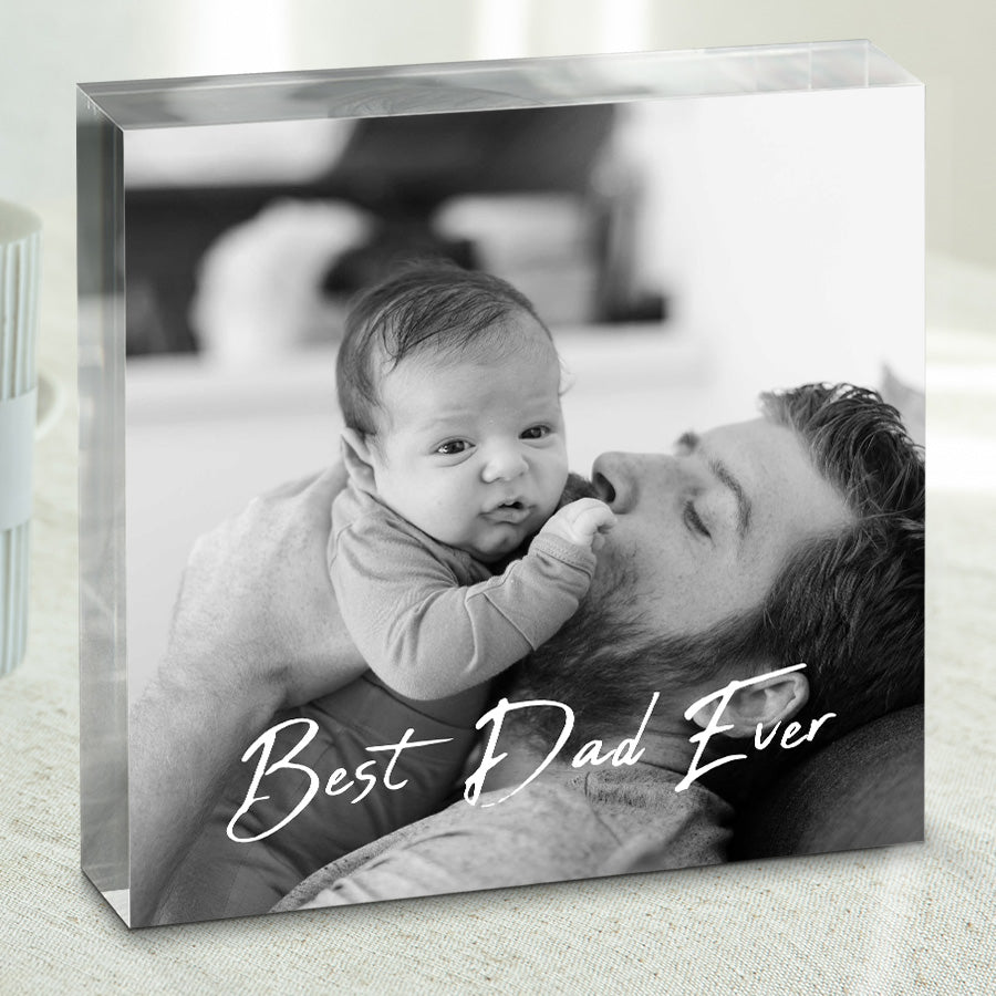 This seemingly simple 1st fathers day gift | customized photo acrylic block becomes a treasure when given to your father on Father's Day. The smooth, transparent material symbolizes the stability, support and protection your dad has provided throughout the years - being your rock when you needed it most. The clear acrylic allows him to see through to the empty space within, representing the freedom he let you explore as you grew and figured out who you are. Though time made marks on its surface, the block remains strong - just like the love and guidance your dad gave that shaped you into the person you are today.