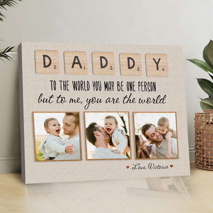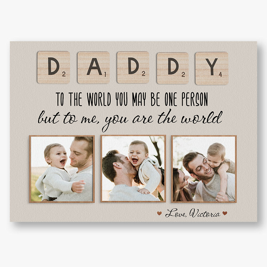 Treat the new dad in your life to 1st fathers day gift | first fathers day gift | first father’s day canvas that commemorates the baby's arrival and his first Father's Day. Our personalized photo canvas is sure to bring a smile seeing little ones grow up before their eyes. Customize it FREE now - he will love displaying this treasured memory for many years to come.