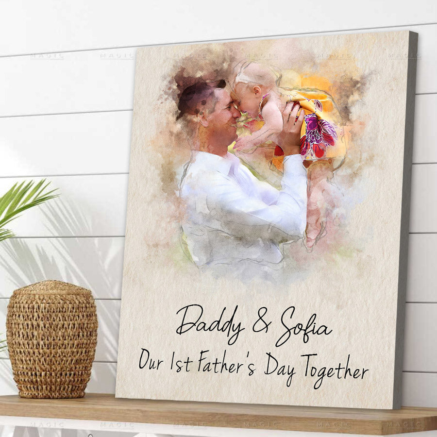 Treat the new dad in your life to 1st fathers day gift | first fathers day gift | first time fathers day gift that commemorates the baby's arrival and his first Father's Day. Our personalized photo canvas is sure to bring a smile seeing little ones grow up before their eyes. Customize it FREE now - he will love displaying this treasured memory for many years to come.