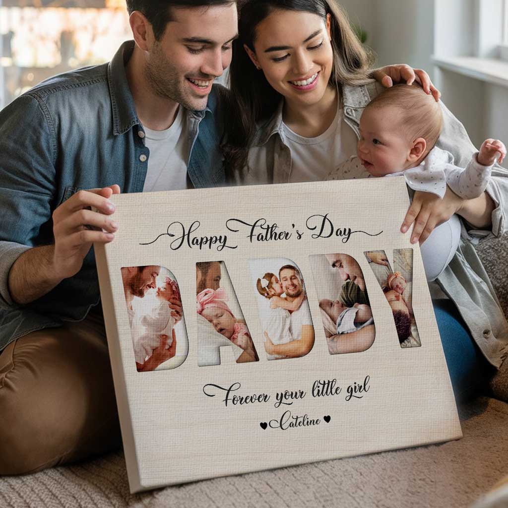 Treat the new dad in your life to 1st fathers day gifts from daughter that commemorates the baby's arrival and his first Father's Day. Our personalized photo canvas is sure to bring a smile seeing little ones grow up before their eyes. Customize it FREE now - he will love displaying this treasured memory for many years to come.