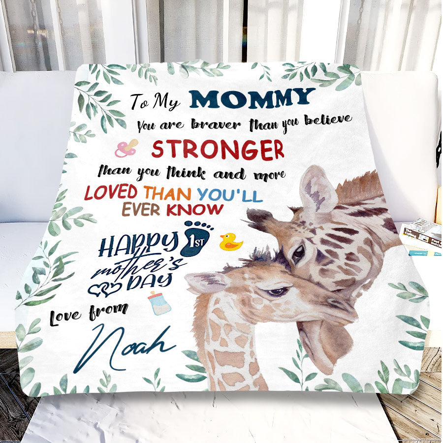 Wrap a new mom in love and warmth with our 1st mothers day blanket. These extraordinary personalized first Mothers Day gifts are more than just a piece of art; it's a heartfelt tribute to the incredible woman who has made a lasting impact on your life.