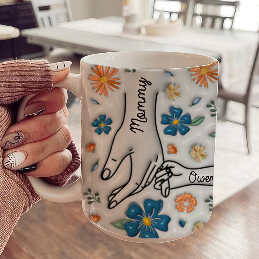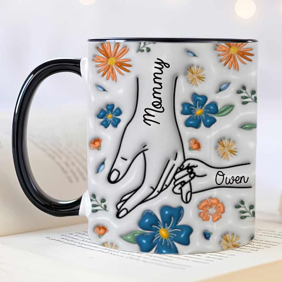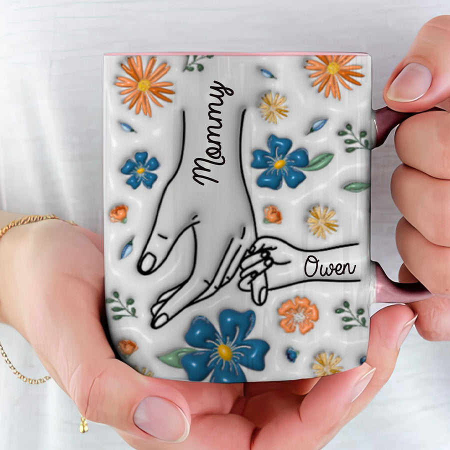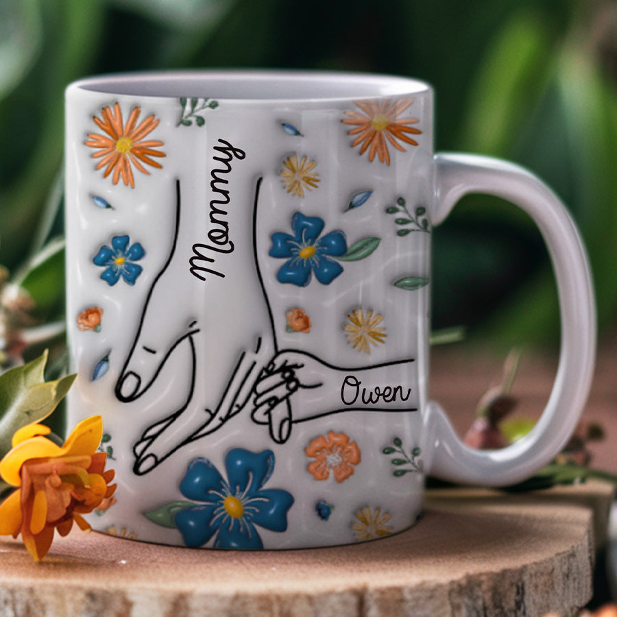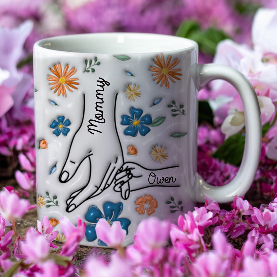 Give 1st mothers day gift | you hold my hand also my heart mug that celebrates the impact motherhood has made on her life. Every time she reaches for her personalized mug, the handprint engraved within will bring a smile to her face and remind her of the enduring love and guidance she provides to her family. A simple gesture, but one that comes straight from the heart.