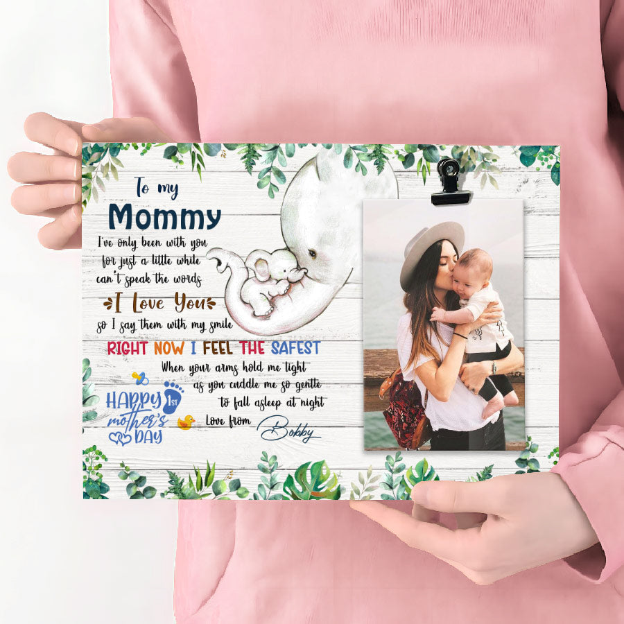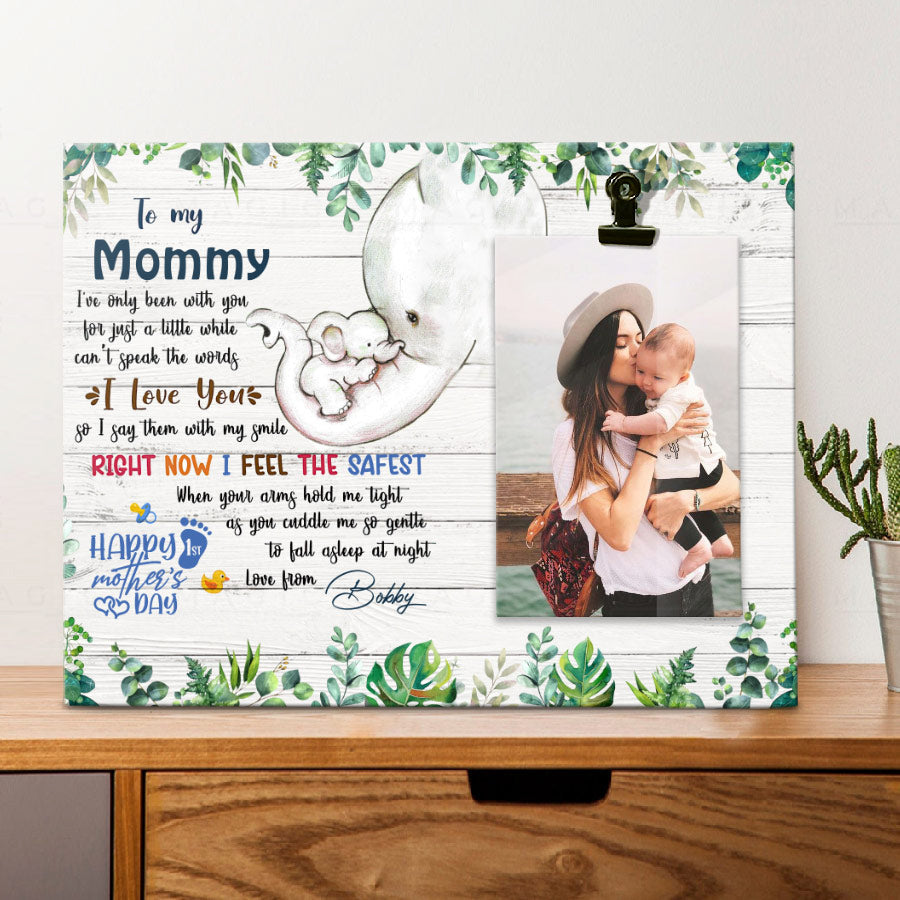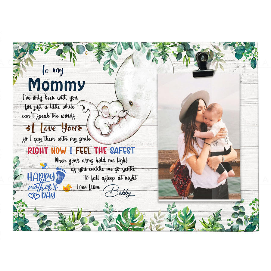 Congratulate the new mom in your life this Mother's Day. Give the joyful first mothers day photo frame of memories with this personalized photo frame. Purchase it today to preserve every milestone, from baby's first moments to years to come.