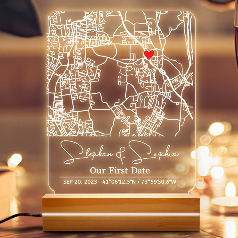 The 1st year anniversary gift | our first date personalized led night light acrylic plaque is designed to capture the essence of love in a tangible form. Made with the finest materials and attention to detail, this plaque features an elegant heart-shaped design, adorned with intricate patterns and delicate embellishments. Its exquisite craftsmanship ensures that it will become a cherished keepsake for years to come.
