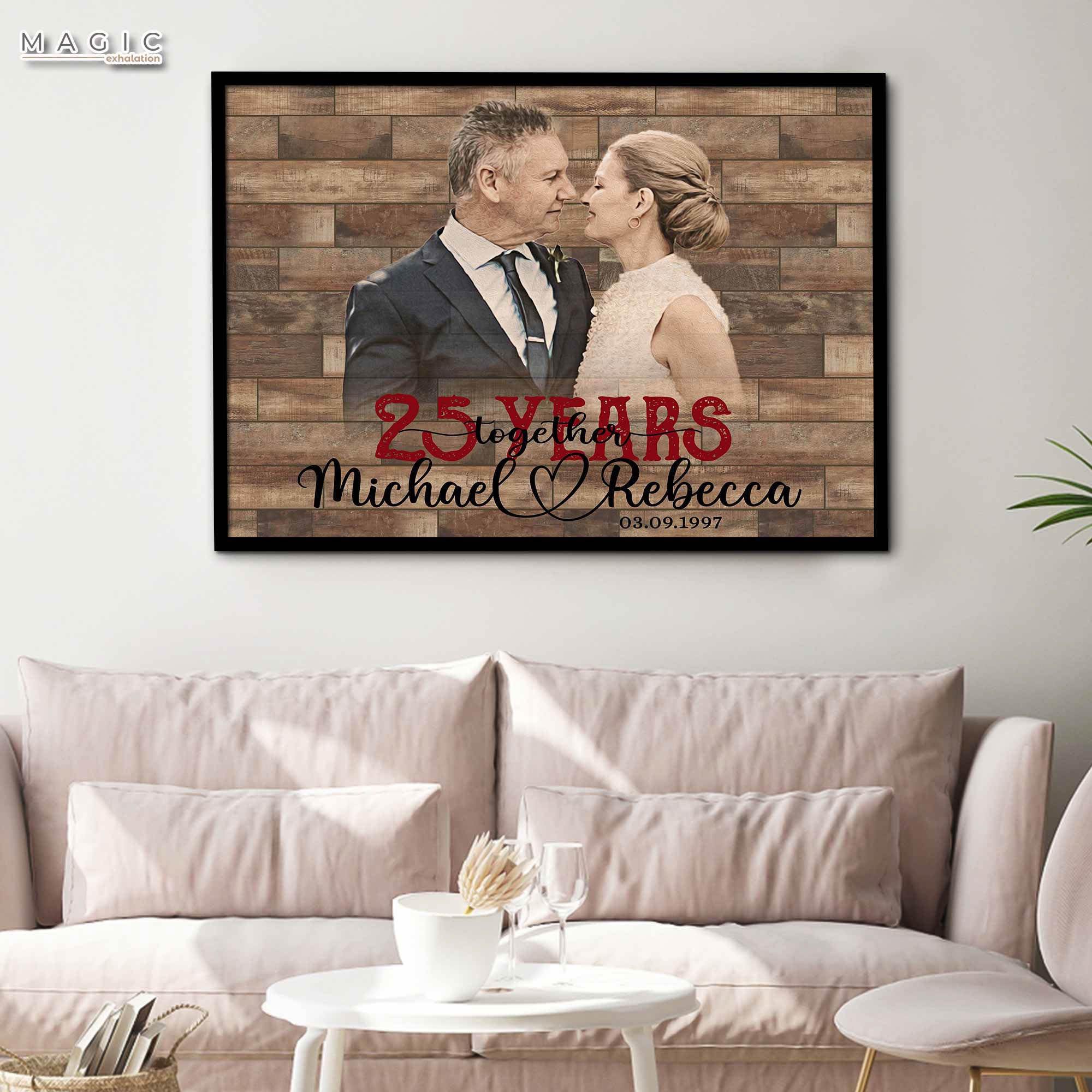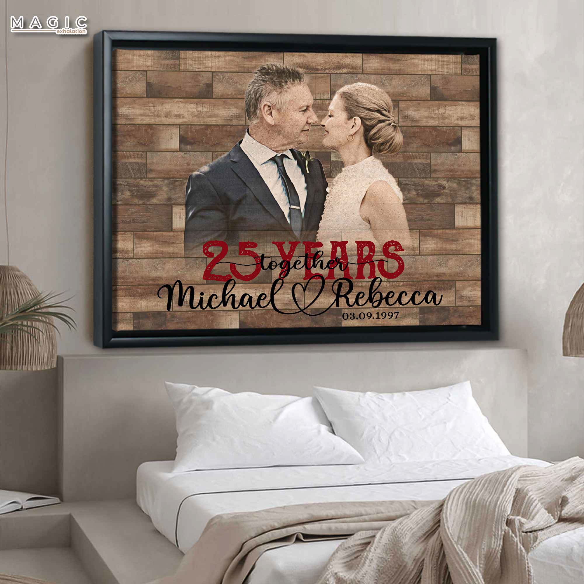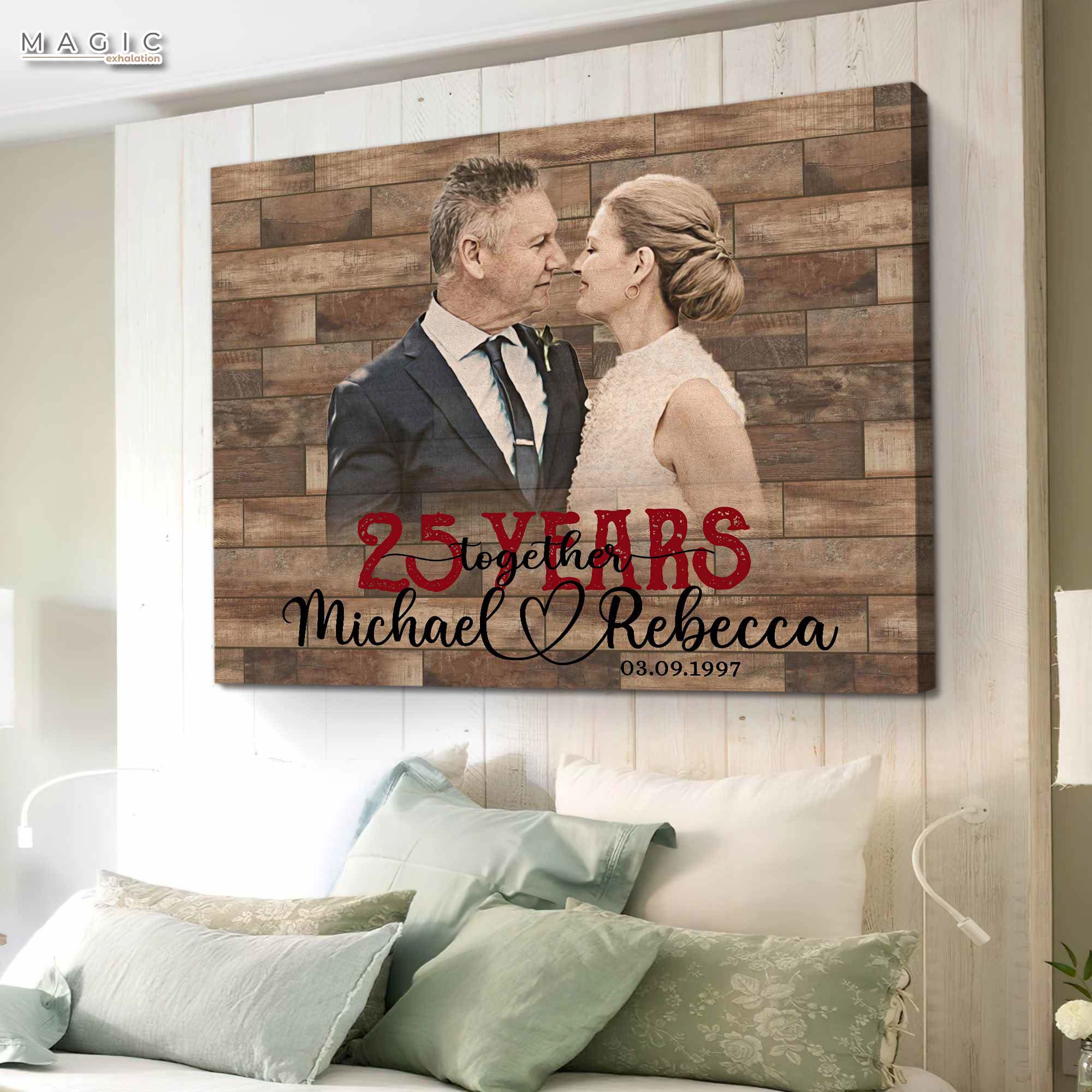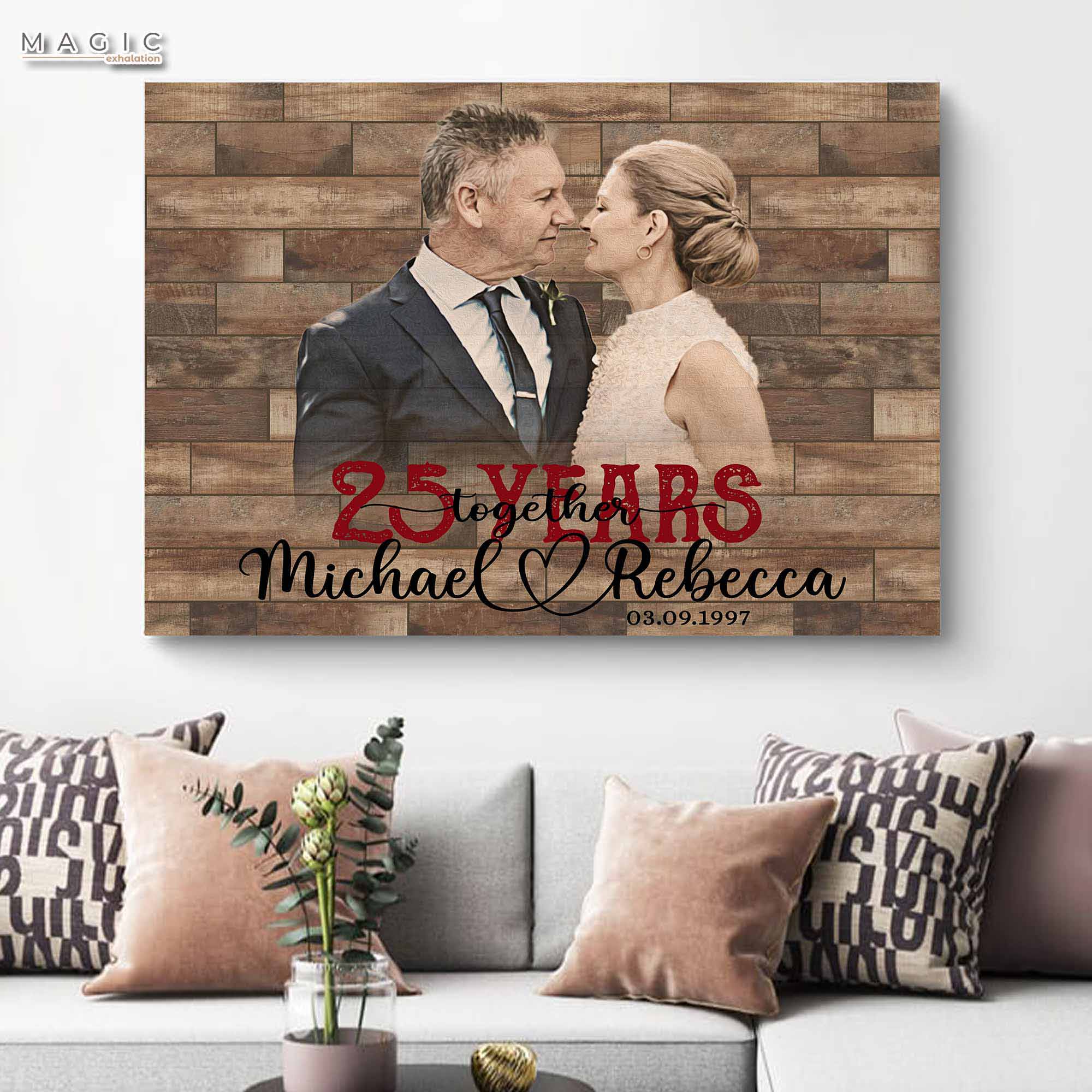 This steady, yet evolving, canvas will be a visual reminder of the love that remains constant as your lives continually change and grow. Shop now to commission 25 year anniversary gift | custom picture canvas for 25th anniversary that celebrates a quarter century of love made real.