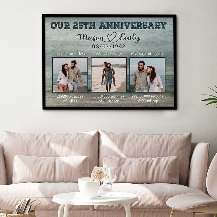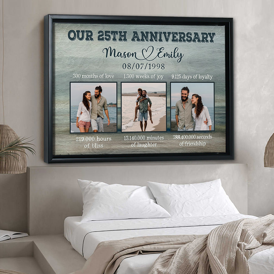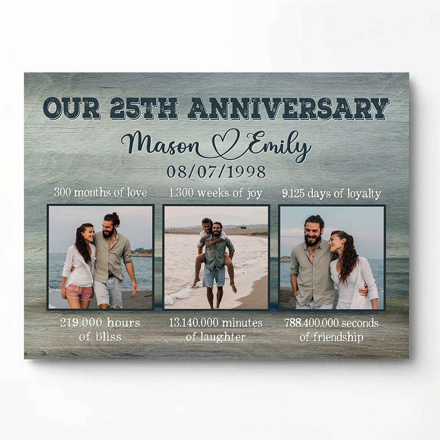 Marriage is something that will go with you throughout your entire life, it's worth spending your time, and your money finding a unique and personalized gift for your loved one on this day. No regret picking this 25th anniversary gifts canvas, buy now and apply "SAVE$5" for a discount of $5!