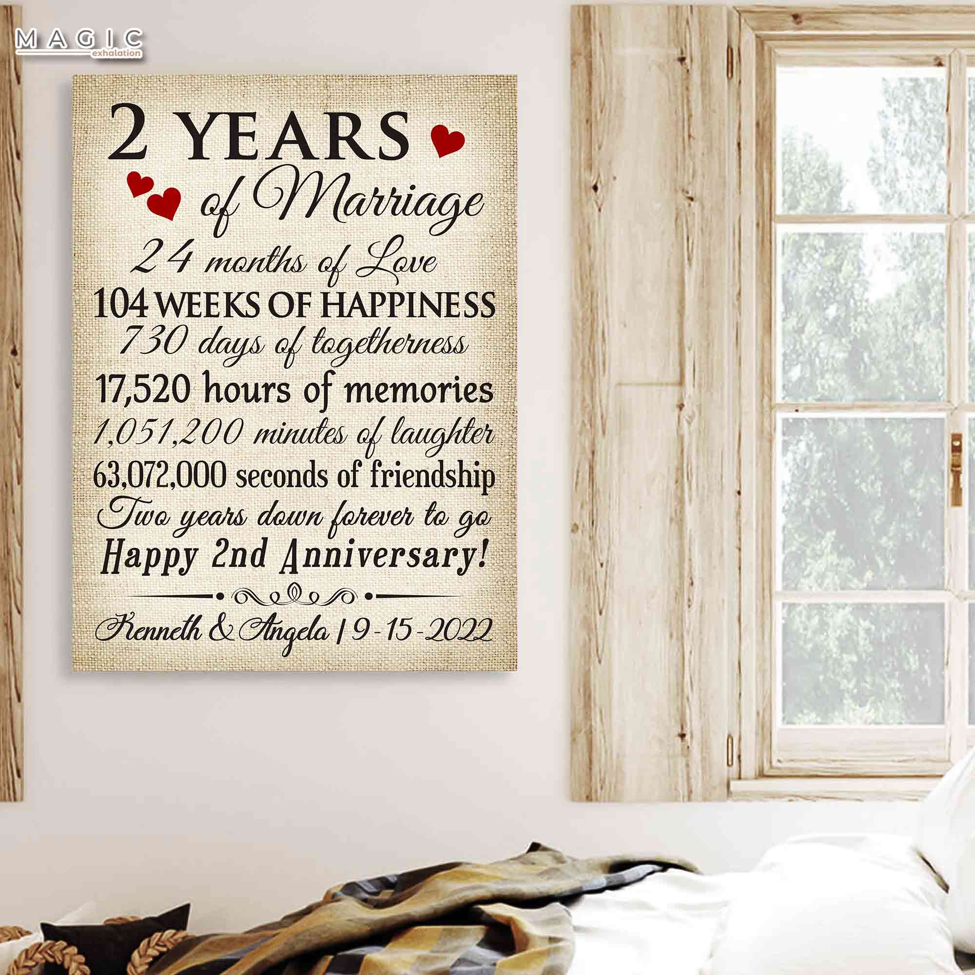 Marriage is something that will go with you throughout your entire life, it's worth spending your time, and your money finding a unique and personalized gift for your loved one on this day. No regret picking this 2 year anniversary gift canvas, buy now and apply "SAVE$5" for a discount of $5!
