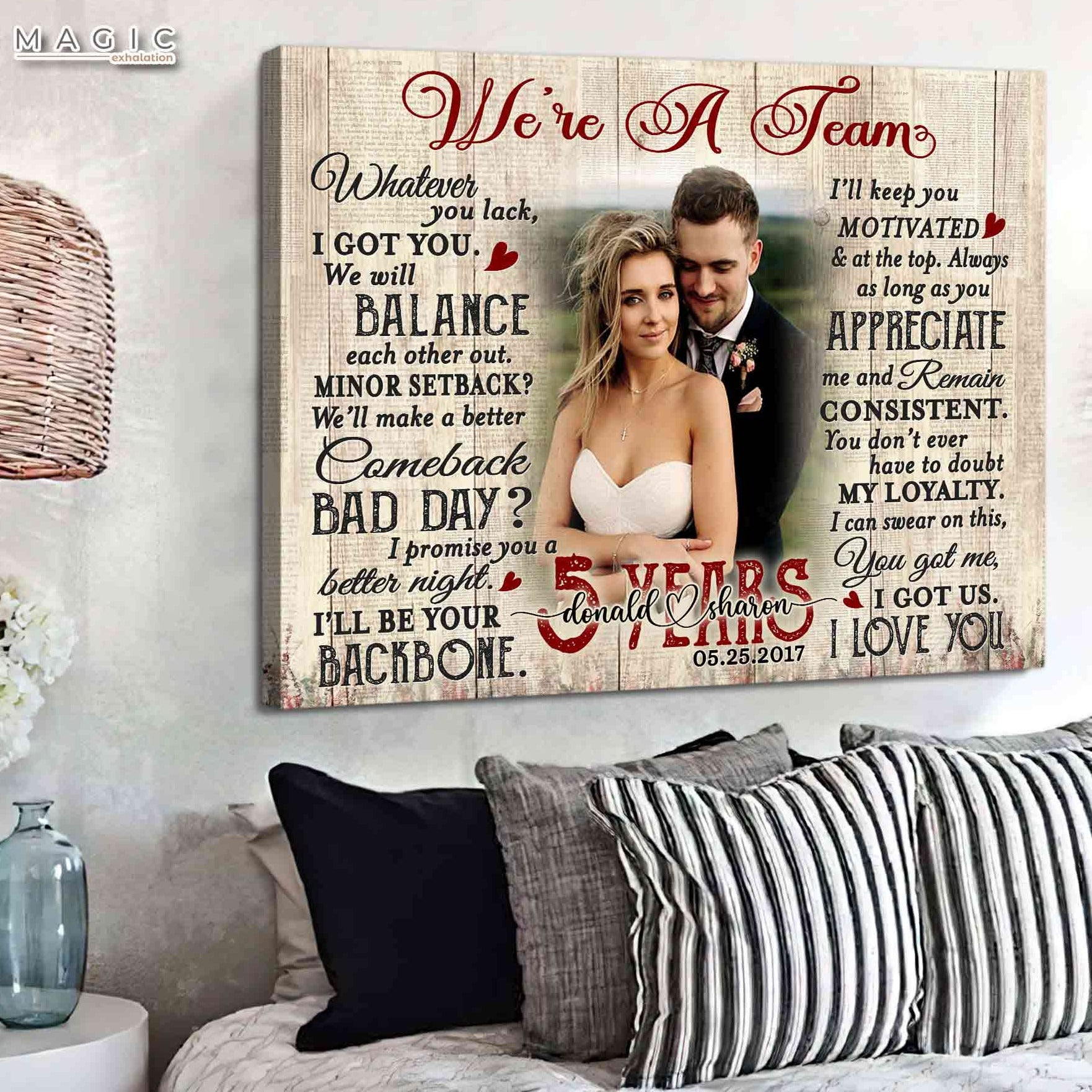 5th Anniversary Gift for Him for Husband Rustic Canvas, Unusual 5th Wedding Anniversary Gifts, Personalized Wood Gifts Anniversary for Him