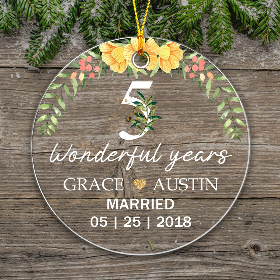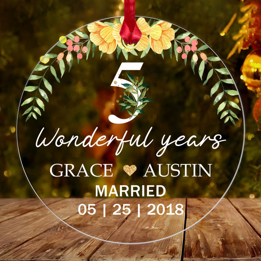 The journey from saying I do to your 5th anniversary has likely included some challenging times that have strengthened your love, making it more resilient and deep. A personalized ornament commemorating this occasion symbolizes your unity through difficulties, the partnership that has persisted through thick and thin, emerging into a love fully tested and proven.