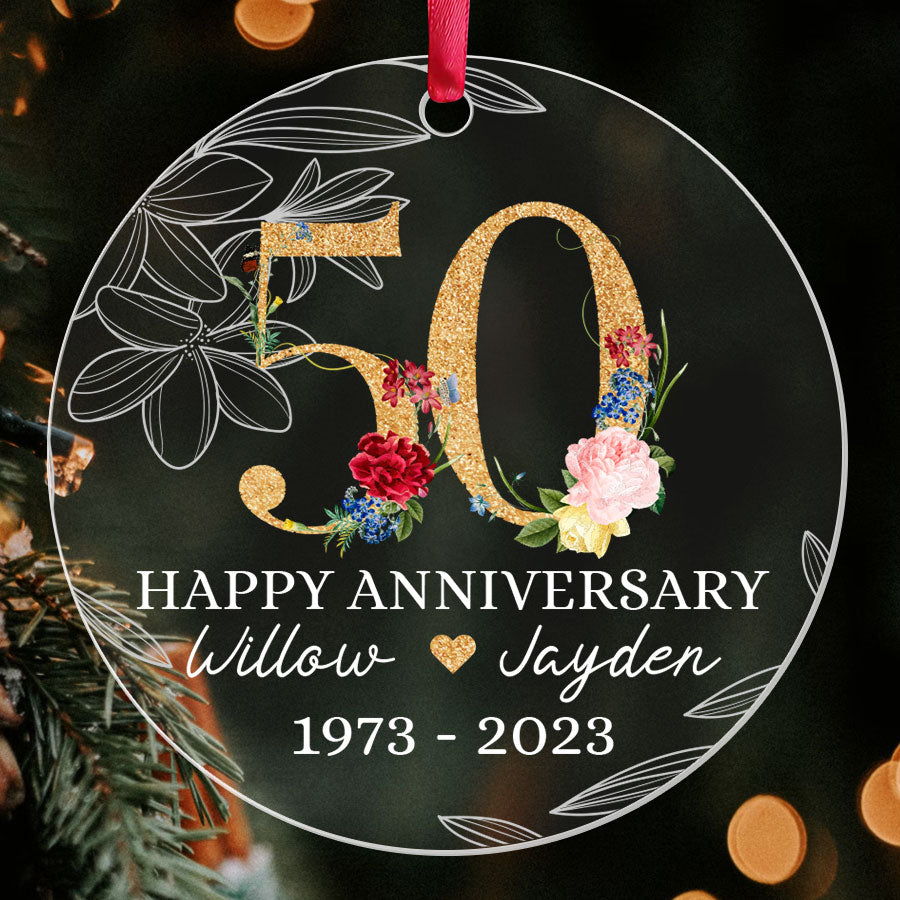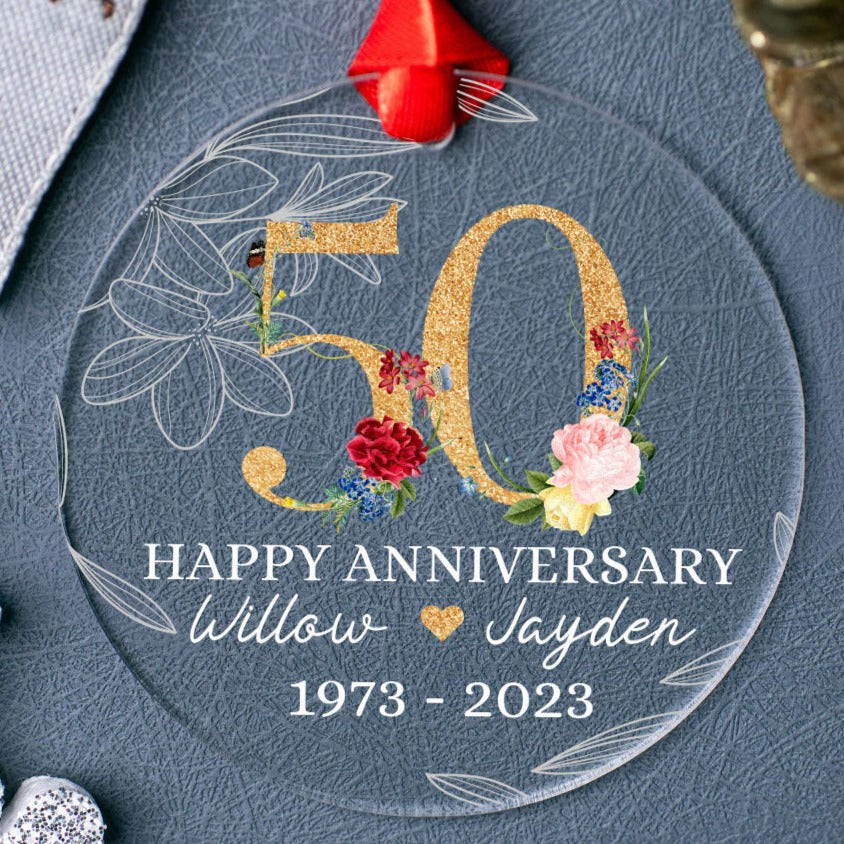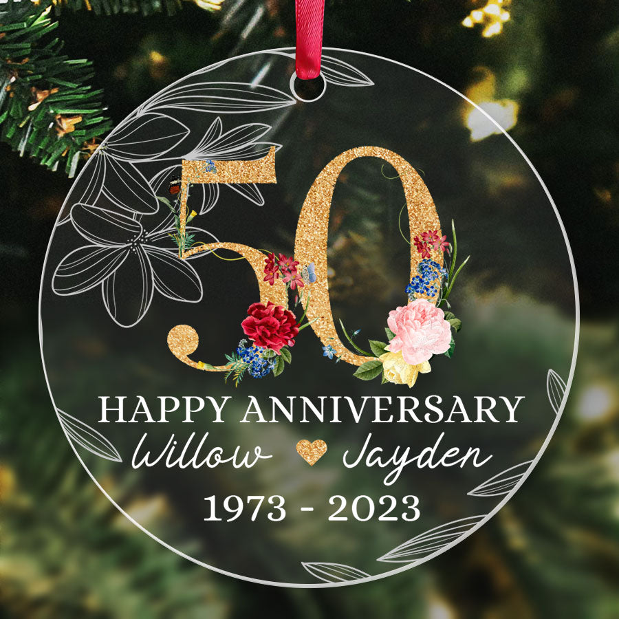 As you look back on 5 decades together, filled with memories and love, this 50 th anniversary gifts | personalized anniversary ornaments will be a symbol of those memories and the joy you feel today. For 50 years, you've shared life's highest highs and lowest lows. You've raised children, built a home, and supported each other through hard times and good.
