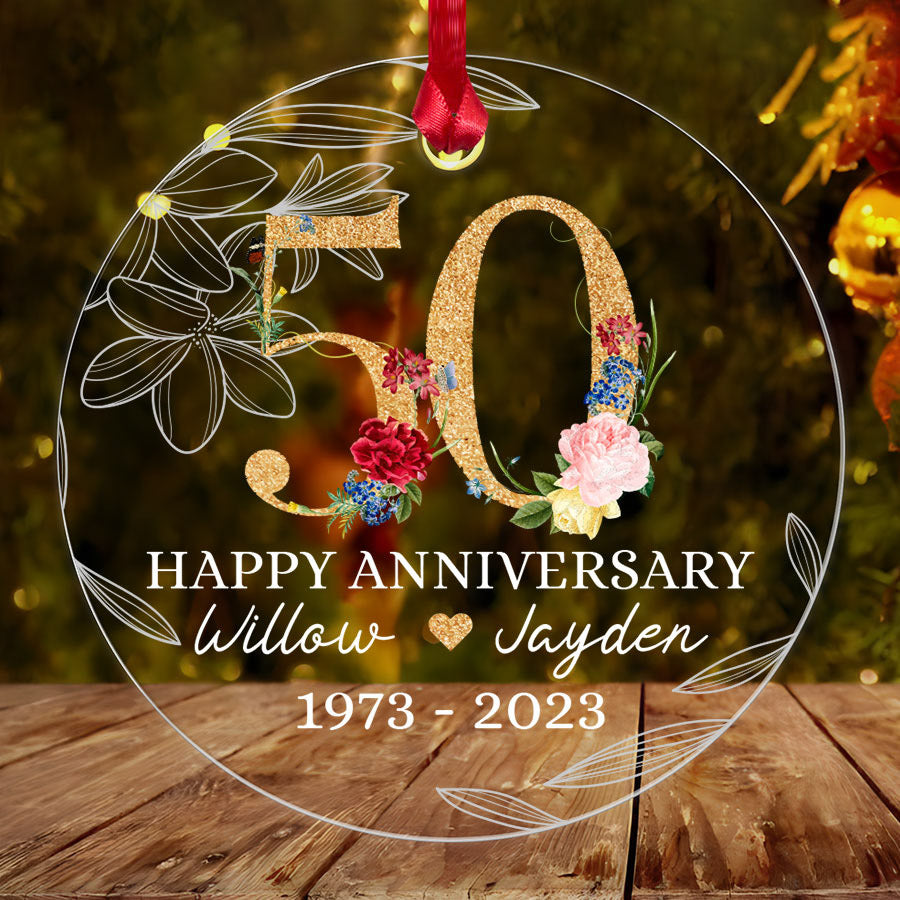 50 Year Anniversary Gifts | Custom 50Th Anniversary Tree Ornaments For Parents | Acrylic Personalized Christmas Ornaments