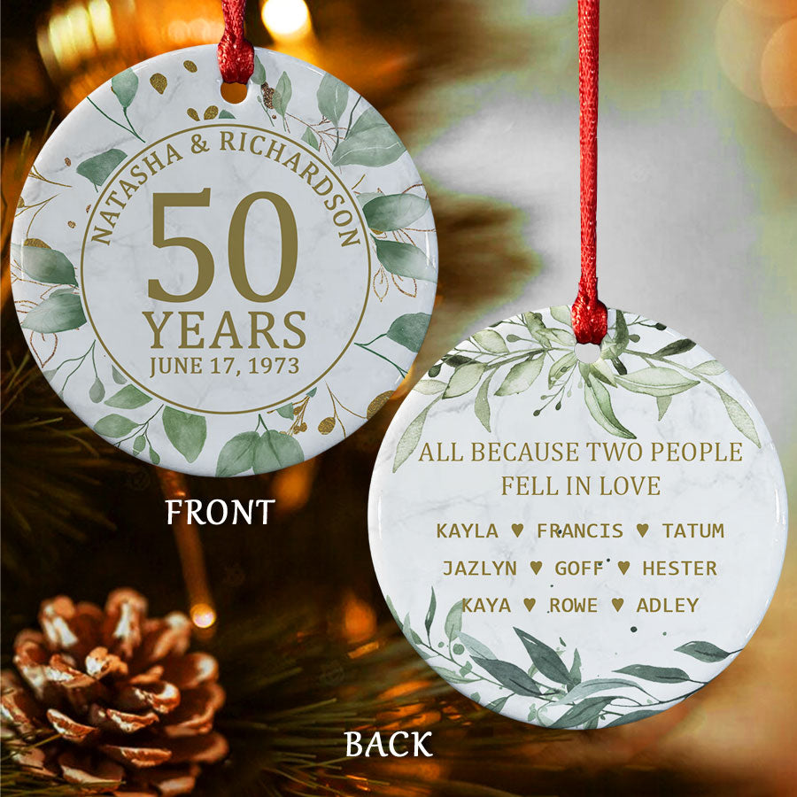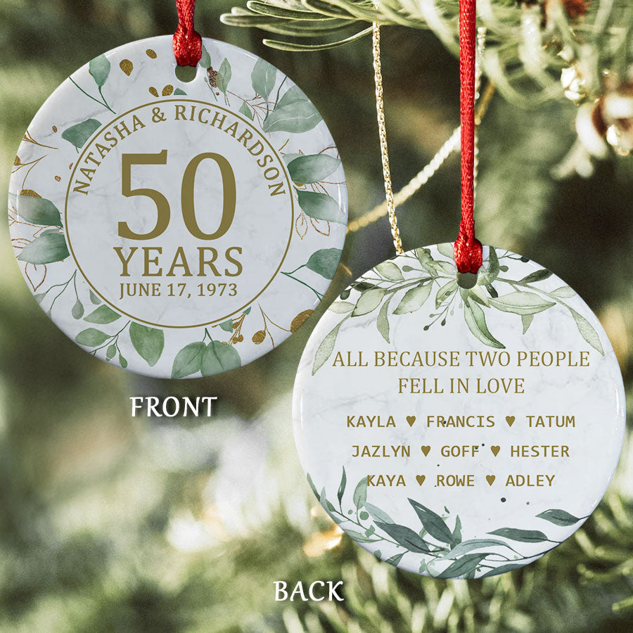 More than just another tree topper, the 50th wedding anniversary ornament | personalized 50th anniversary ornament symbolizes the resilience and devotion central to their remarkable relationship. Displaying it year after year shows that their love still brings you joy and that you are celebrating their rare achievement as a family. It's a heartfelt way to express gratitude for the stability and example of true partnership they provided.