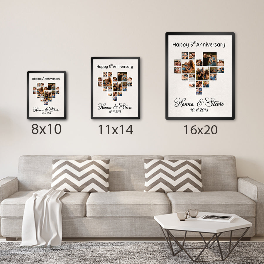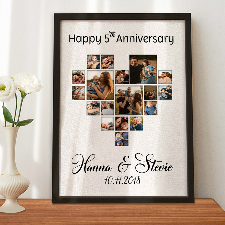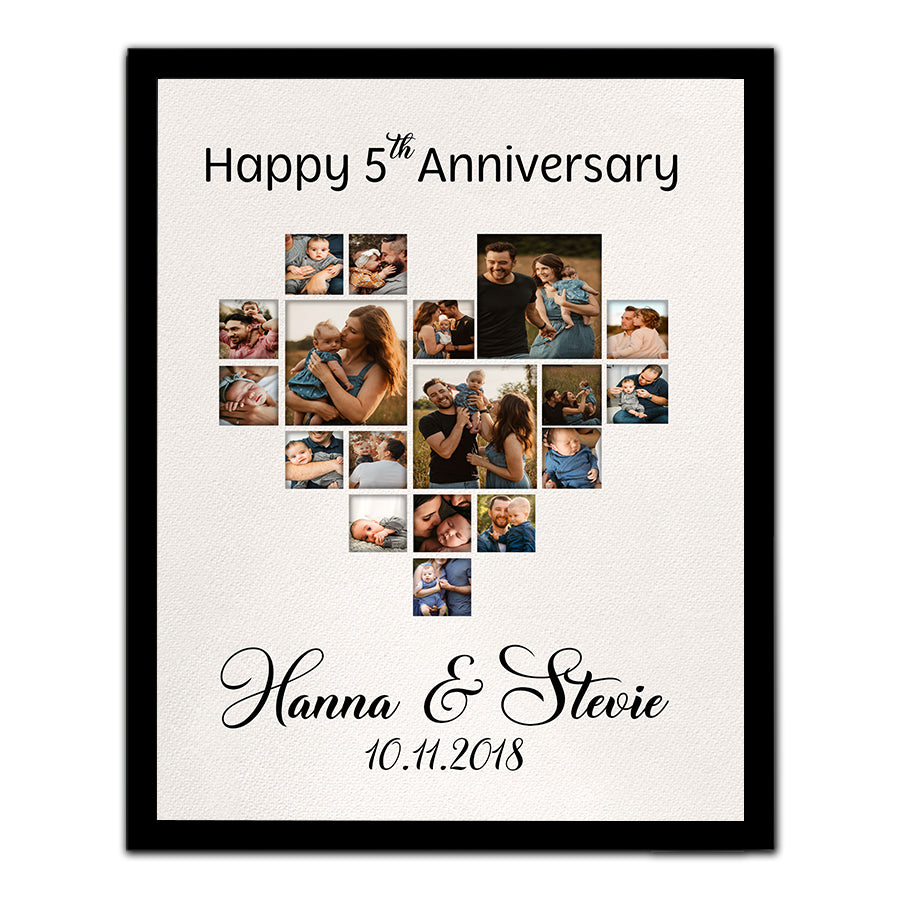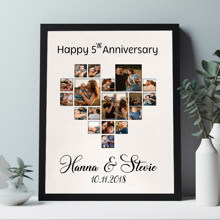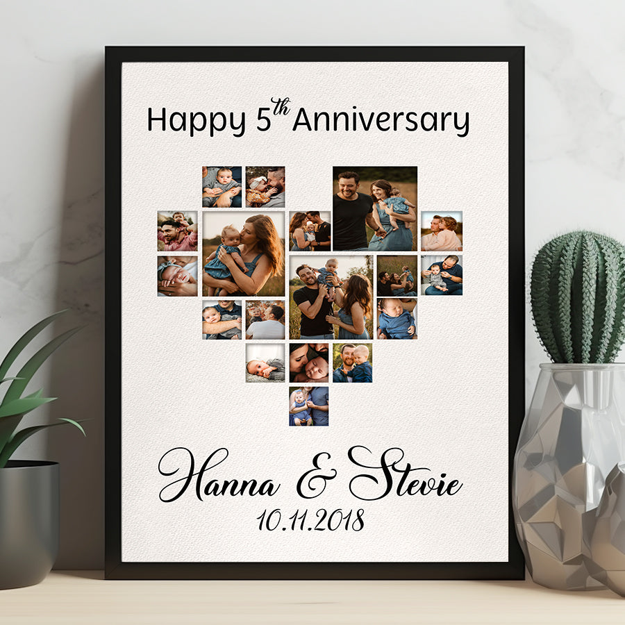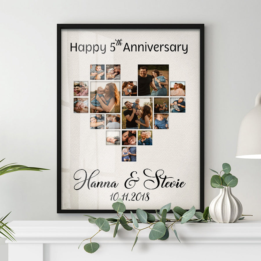 With a 5th anniversary artwork, you can showcase cherished memories and inside jokes only you two share. Whether you include photos from your first date, wedding album snaps, or images of places you've visited together, this personalized gift allows you to relive special moments and reflect on how far you've come as a couple. Hanging it proudly in your home ensures your love story surrounds you every day.