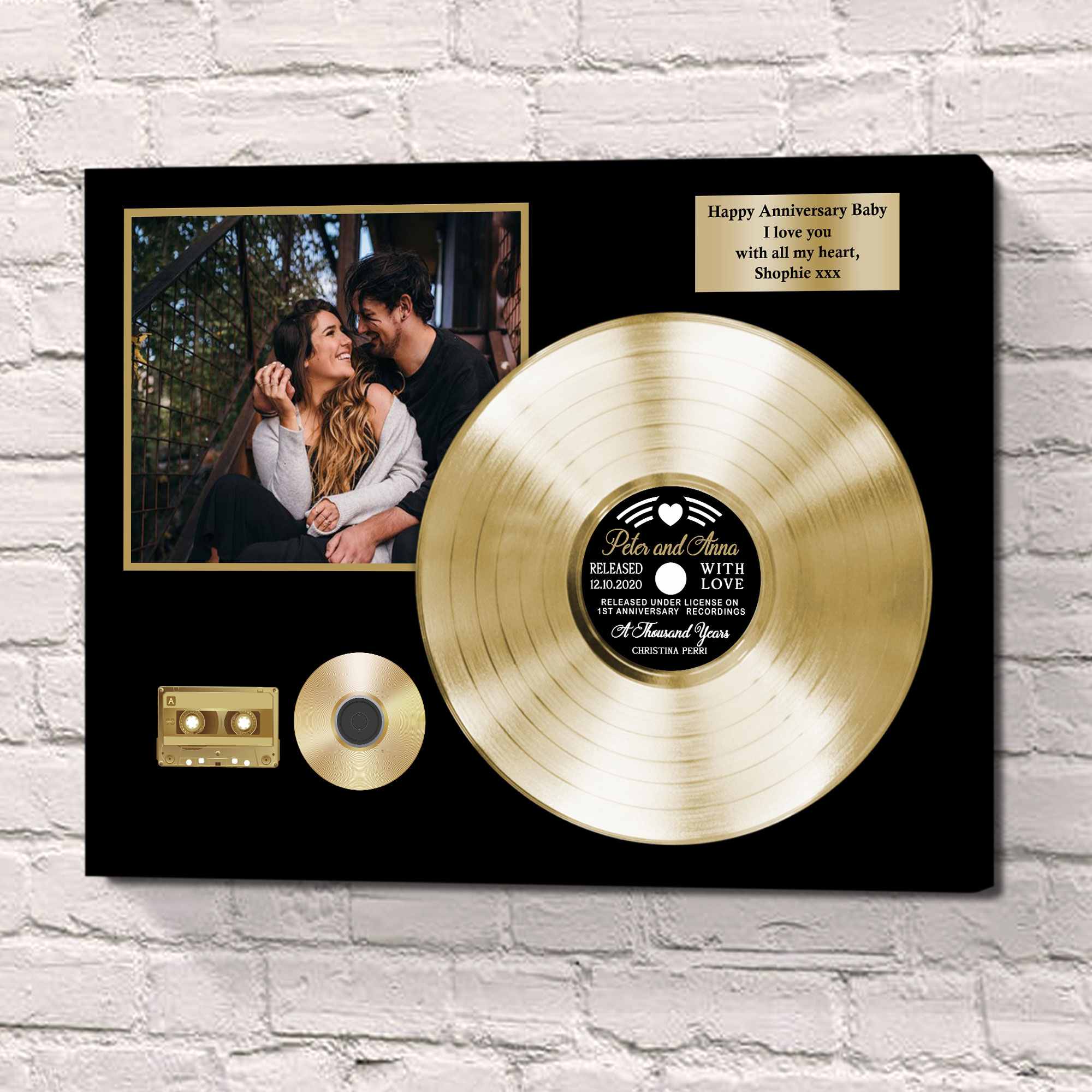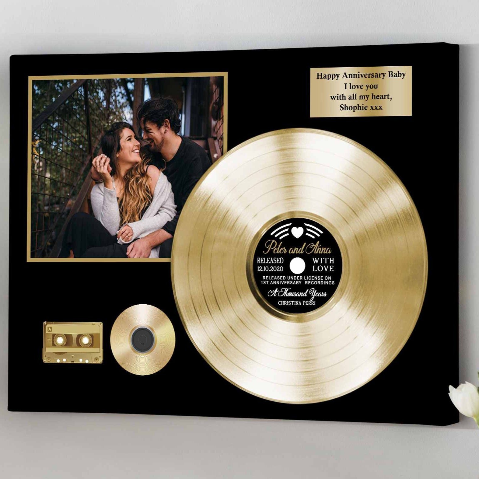 5 year anniversary gift is not hard to find with a personalized 5th wedding anniversary gifts, you can show your spouse how much you care by turning excellent anniversary gifts into a one-of-a-kind gift! With this item, you are allowed to personalized your information in special viny record on canvas!