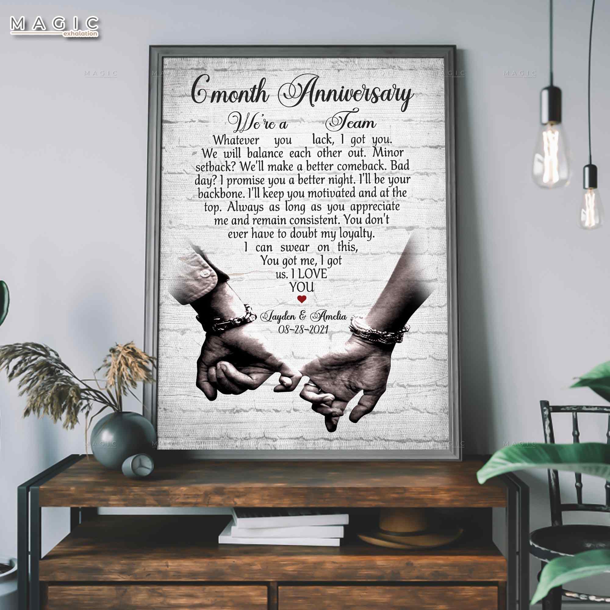 We're A Team Custom 6 Month Wedding Anniversary Gift Canvas Wall Art, Six Month Anniversary Gifts for Him, 6 Months Gift