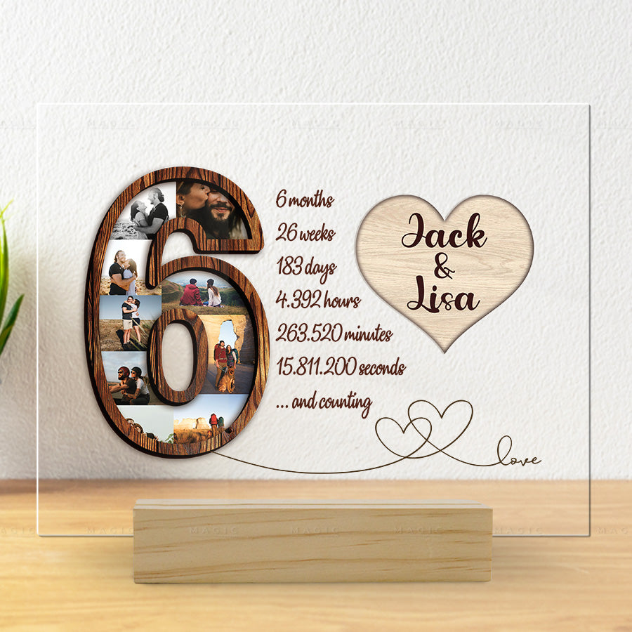 Celebrate your 6-month anniversary with a custom acrylic plaque! With a personalized image or name and date, these 6 month anniversary gifts for him are a perfect way to show your partner how much you care.