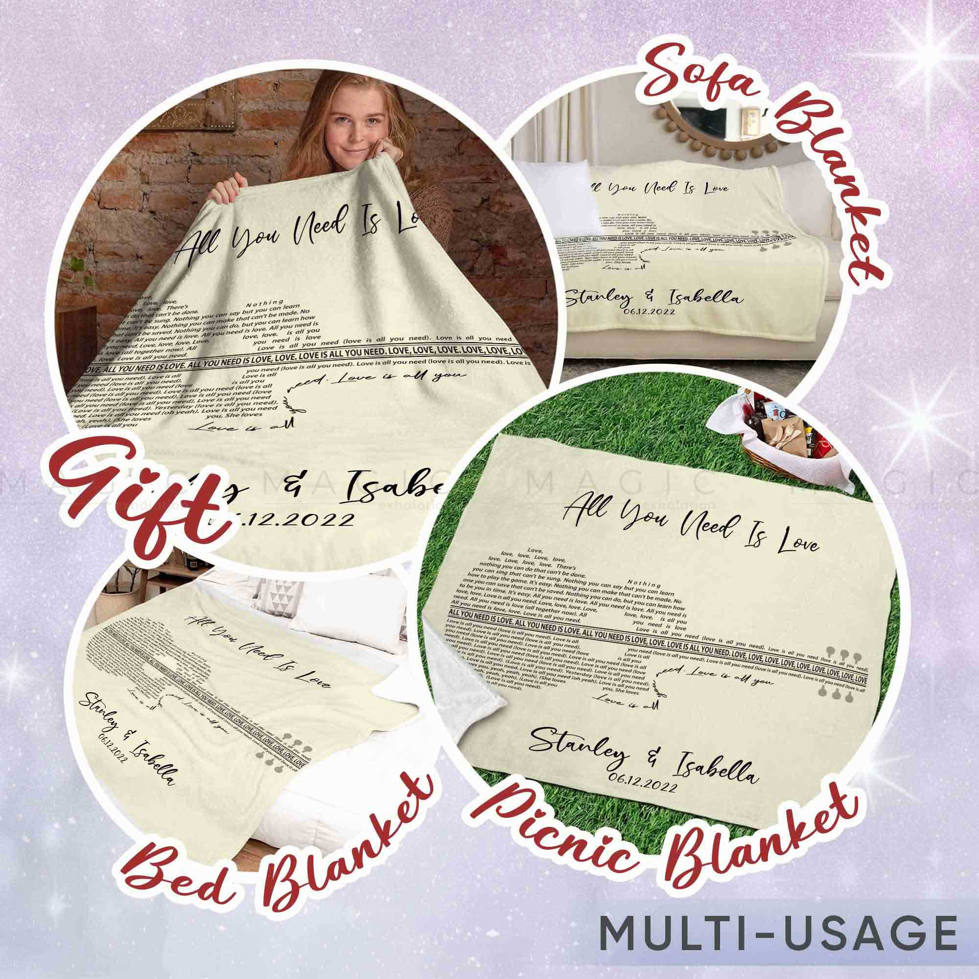 Finding perfect song lyric gifts for the music lovers, why not use song lyrics to create anniversary blanket present that truly speak to your loved one? It could also be a perfect anniversary gift