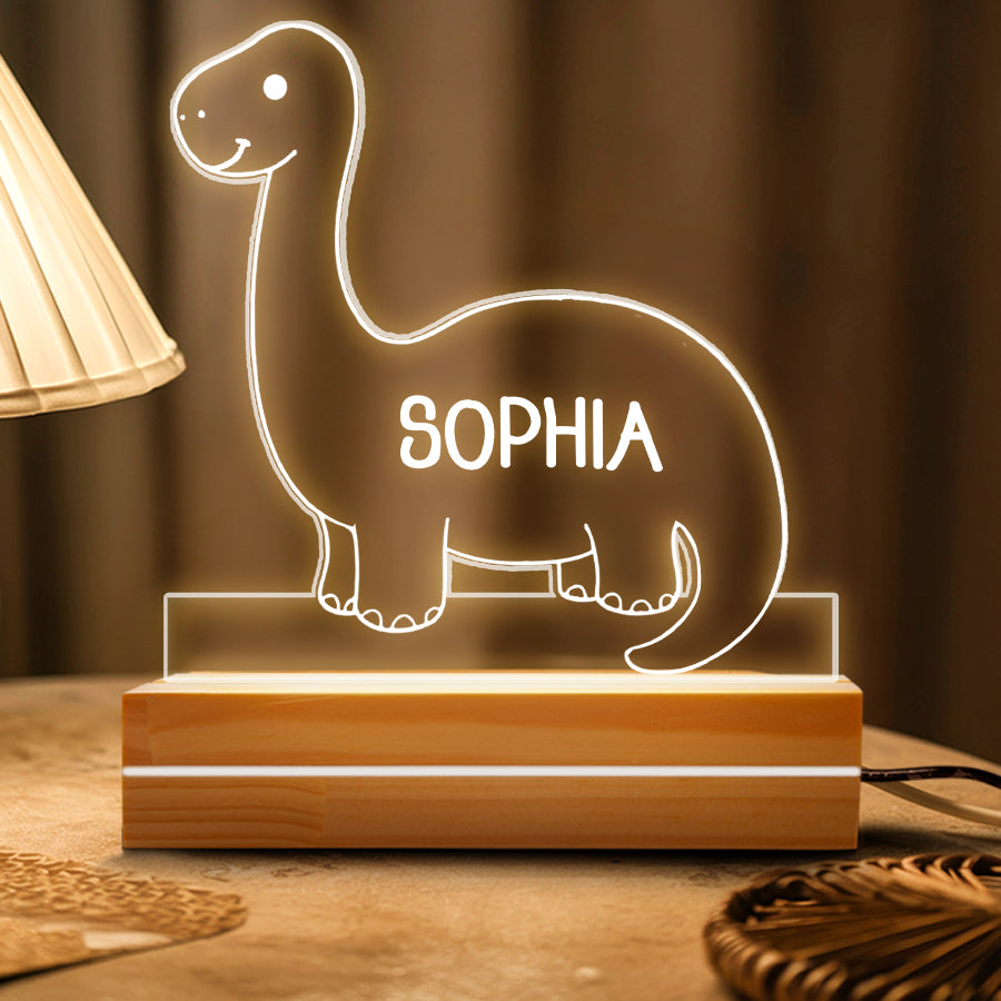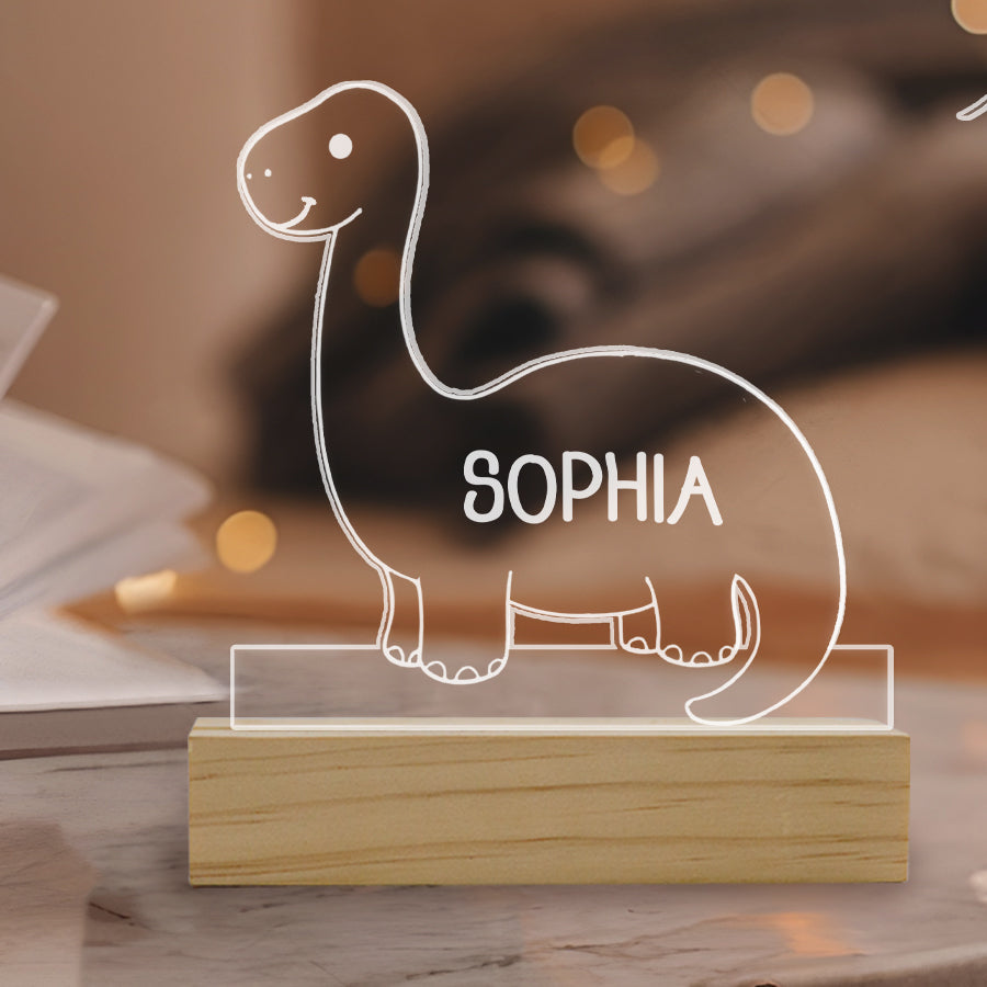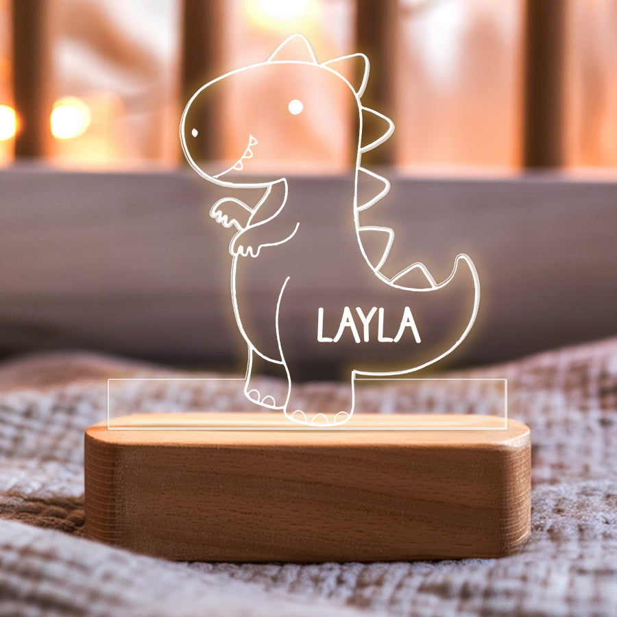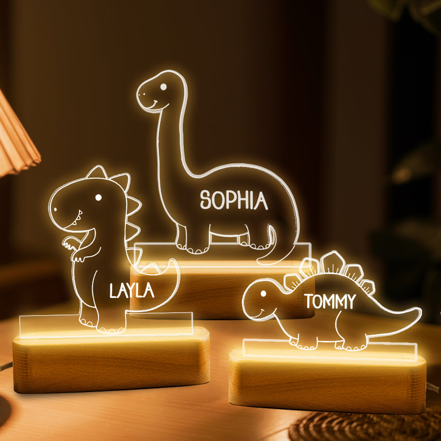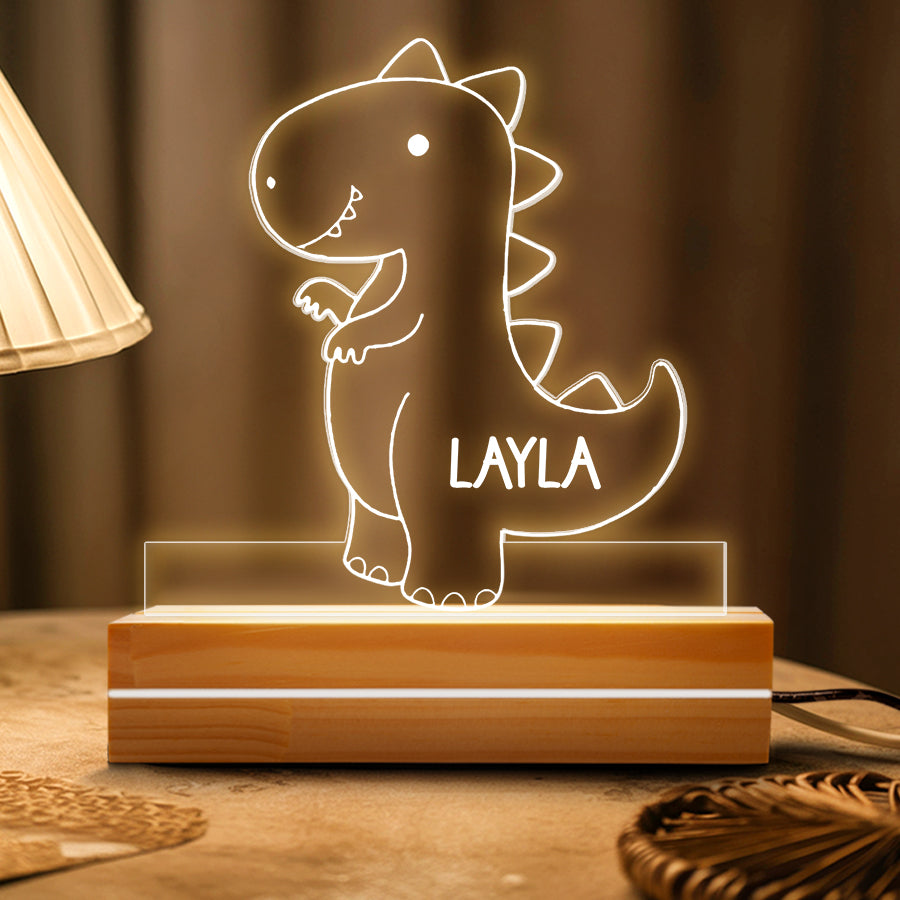Instead of bright overhead lights that could disrupt sleep, a baby night light | kids personalized acrylic night light dinosaur casts a dim ambient glow. It allows tired parents to see well enough to care for a baby without full brightness. The low-level light is also less startling if the baby wakes.