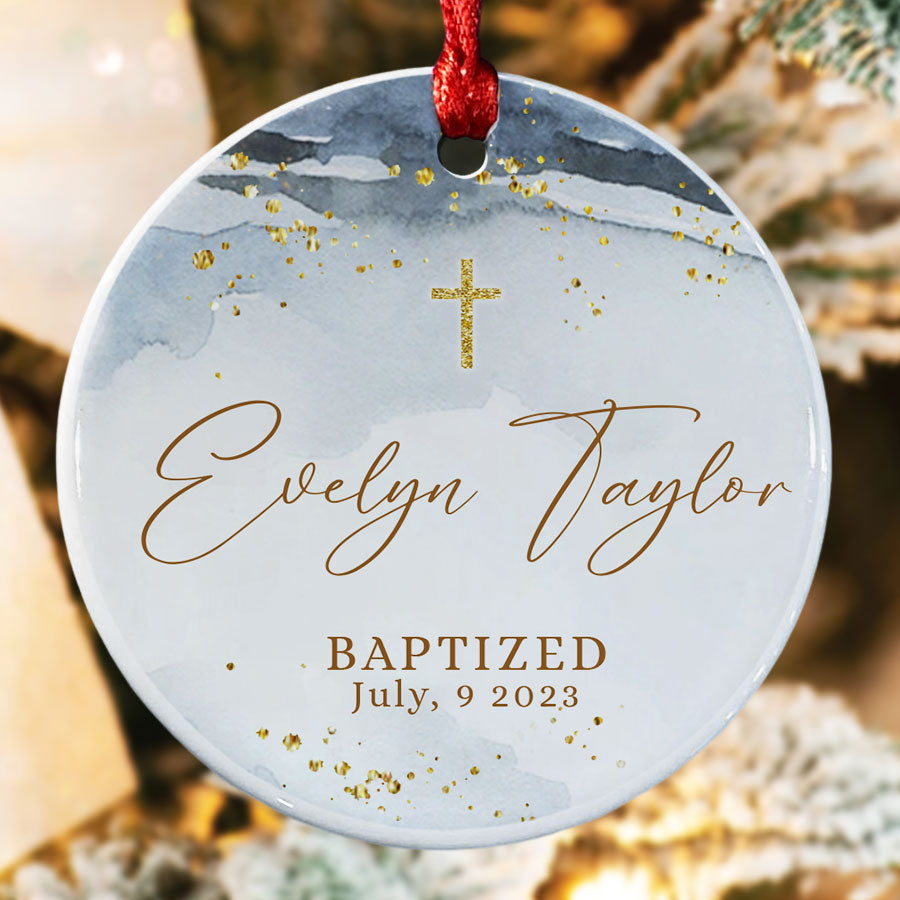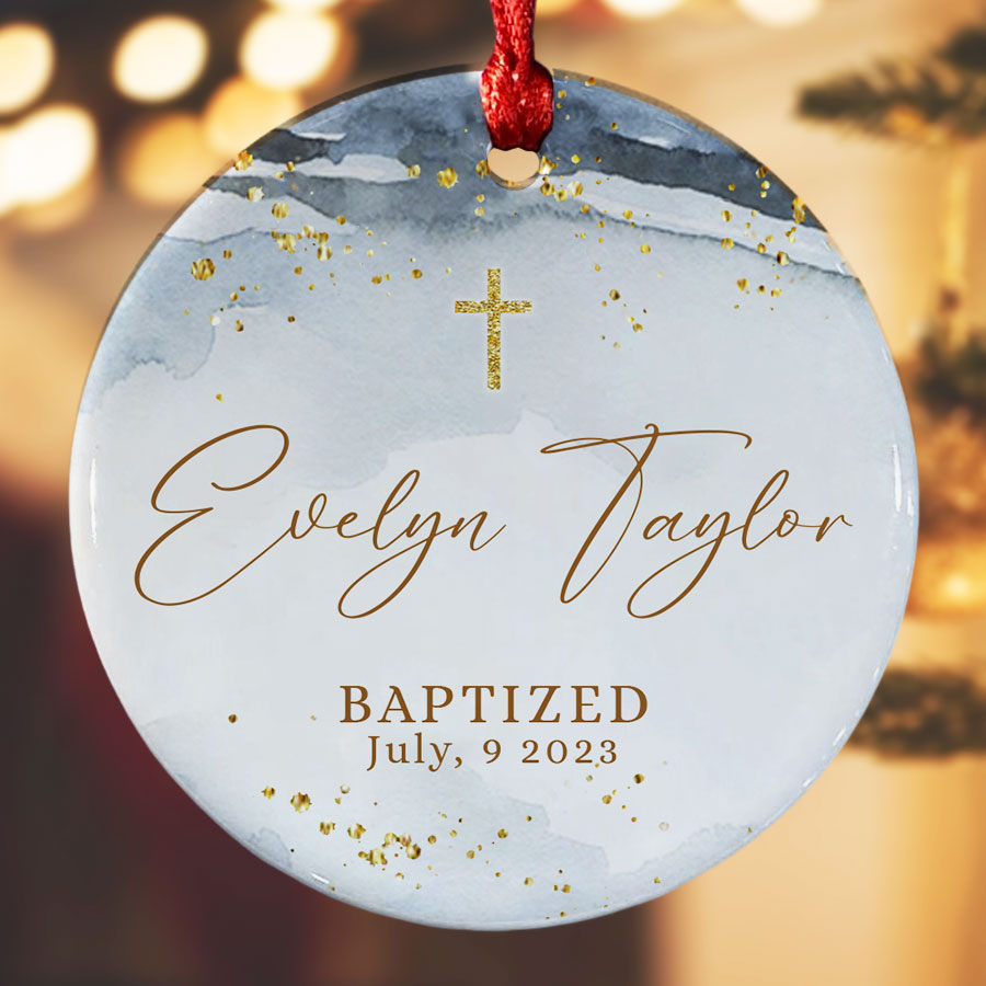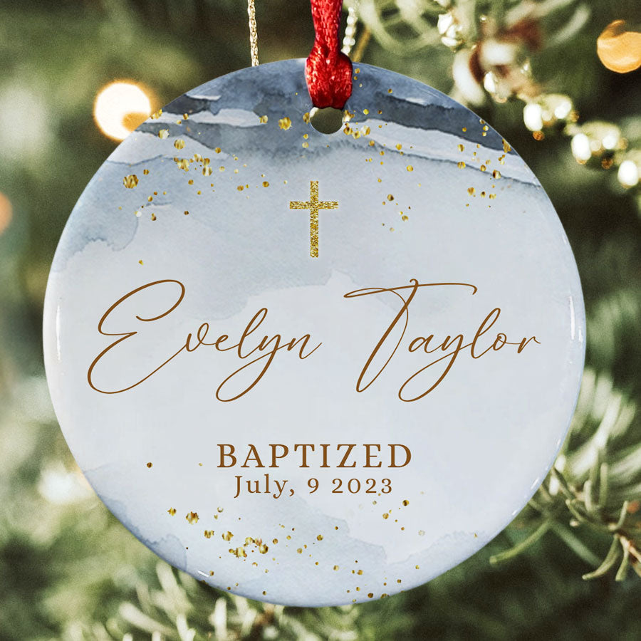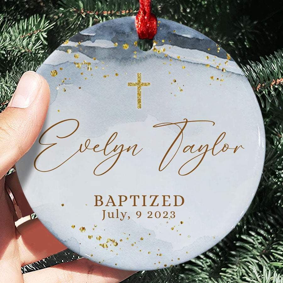 Baptism Ornament | Personalized Baptism Cross Ornament | Baptism Gifts From Godparents | Ceramic Ornaments With Name