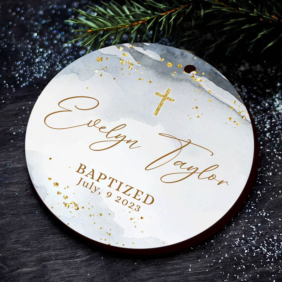 This ornament makes the perfect baptism gift to congratulate new parents on their baby's passage into Christianity. Give the unique present of traditions that will be part of their family holidays for life. Order now and it will arrive in time for their first Christmas celebrations. Choosing baptism ornaments is a choice they will cherish forever.