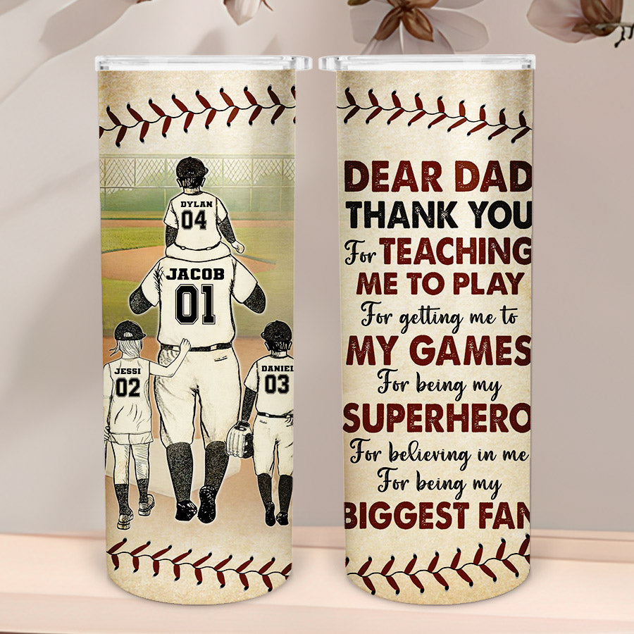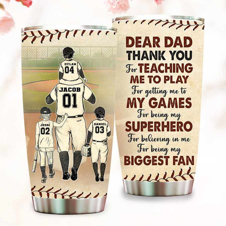 Giving dad a baseball dad tumbler shows you were thinking of him, even in the small moments of his busy day. The fathers day tumbler honors the bond he share and represents comfort, tradition and memories built together over the years.