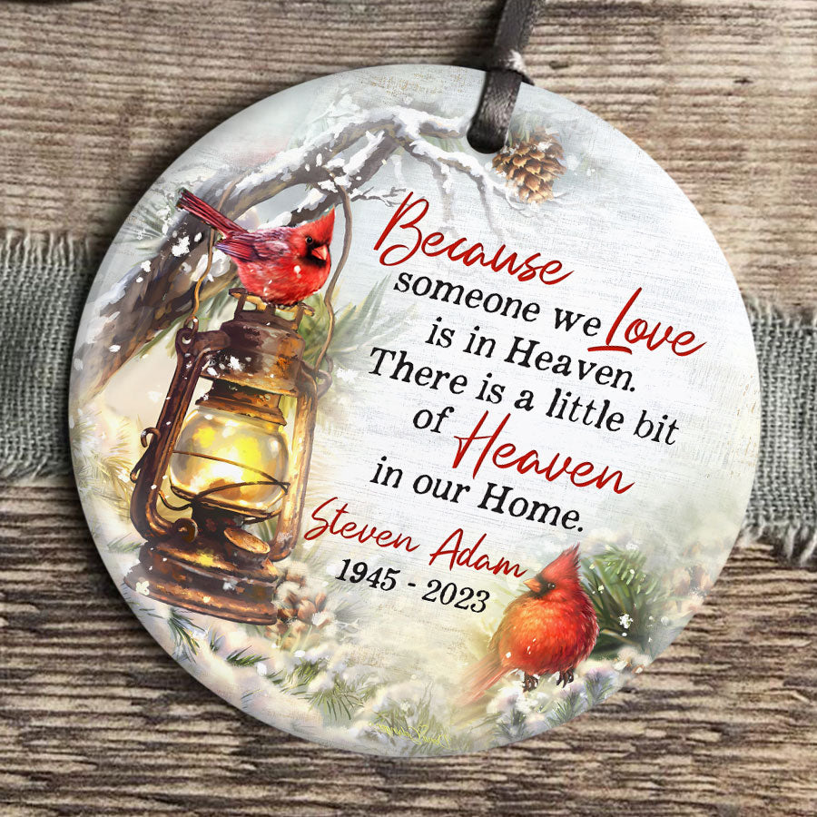 Honor precious memories with the meaningful because someone we love is in heaven ornament. As the holidays approach, it's common to feel the absence of loved ones no longer with us. However, keeping their spirit close helps bring comfort during this reflective season. Come and check out our Memorial Ornaments for the perfect Personalized Christmas Ornaments to warm up your loved ones this holiday.