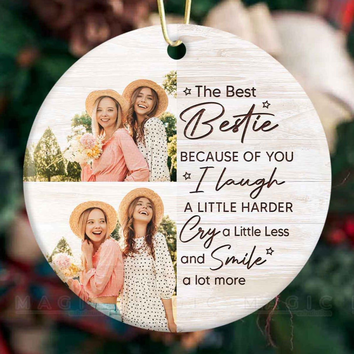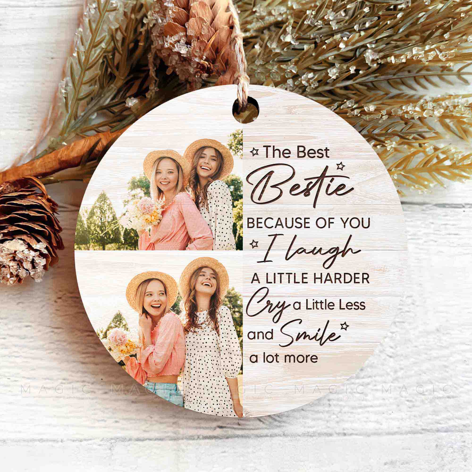 This ornament can be customized with your friend's name and a photo, making it a truly unique and special gift. The best part is that these best friend gifts will serve as a reminder of your friendship every time your friend sees it.