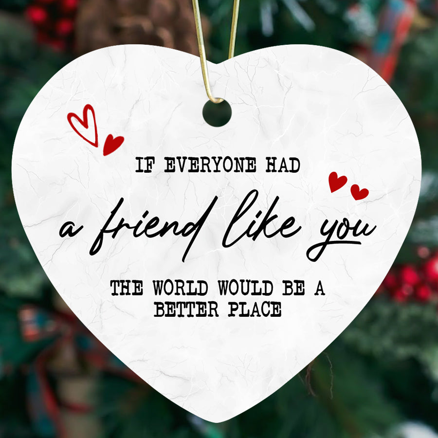 Rather than exchanging yet another gift that may be forgotten orplaced in a drawer, a friend ornament is a unique keepsake that can be enjoyed for years to come. As your tree goes up annually, these special ornaments will serve as a visual reminder of the fun times you've shared with friends. They make a heartfelt gift to show someone just how much their friendship means to you.
