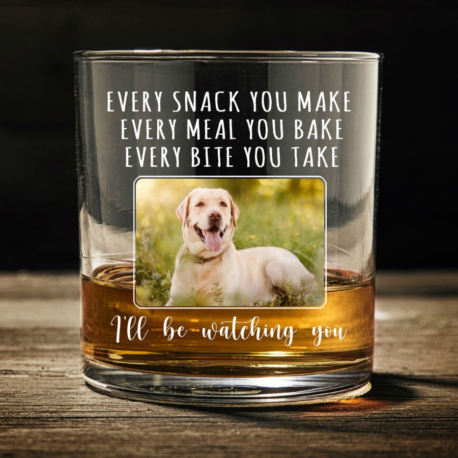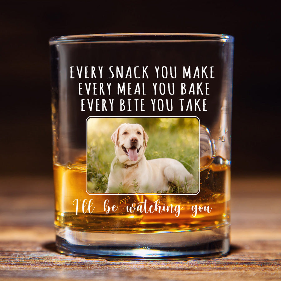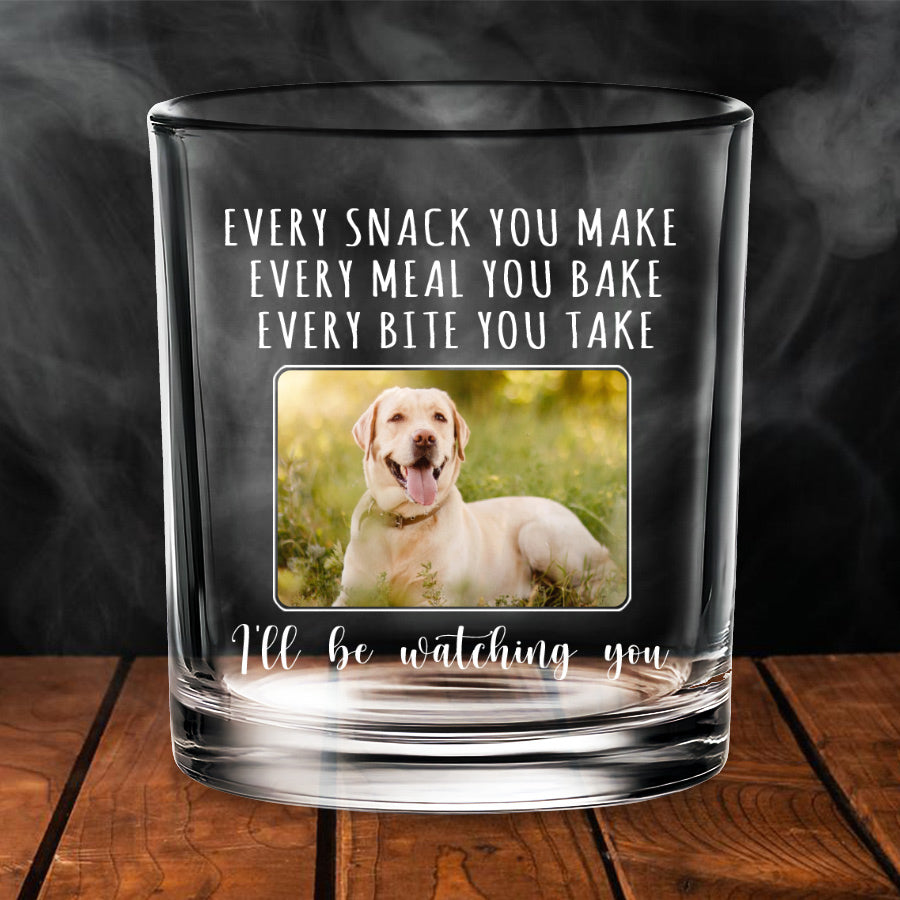 Fathers will smile when they see their face looking back at them from this one-of-a kind whiskey glass, surrounded by paw prints and images of their loyal dog companions.