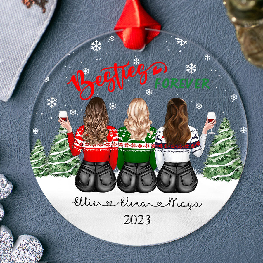 Besties Forever Ornament | Personalized Friends Christmas Ornaments | Friends Xmas Ornament | Acrylic Ornaments Personalized