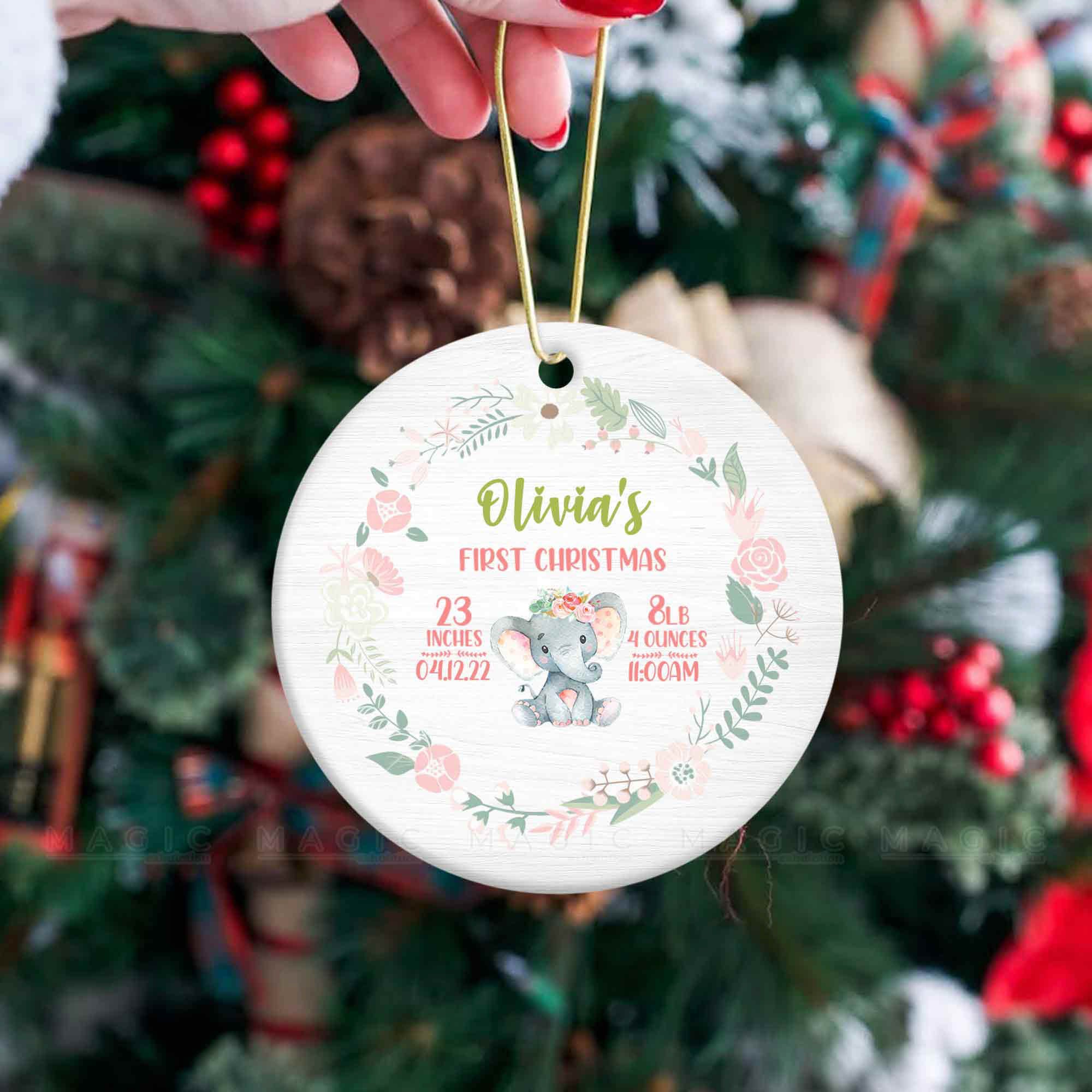 This ornamental birth stats ornament can be found in many different designs, but they all serve the same purpose: to help remember a baby's first Christmas for years to come. Most ornaments can be personalized with the baby's name and birthdate, and some even have a place for a picture.