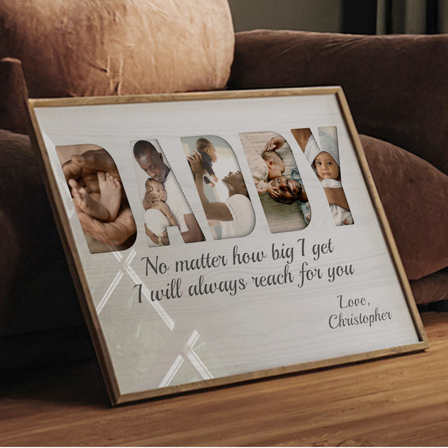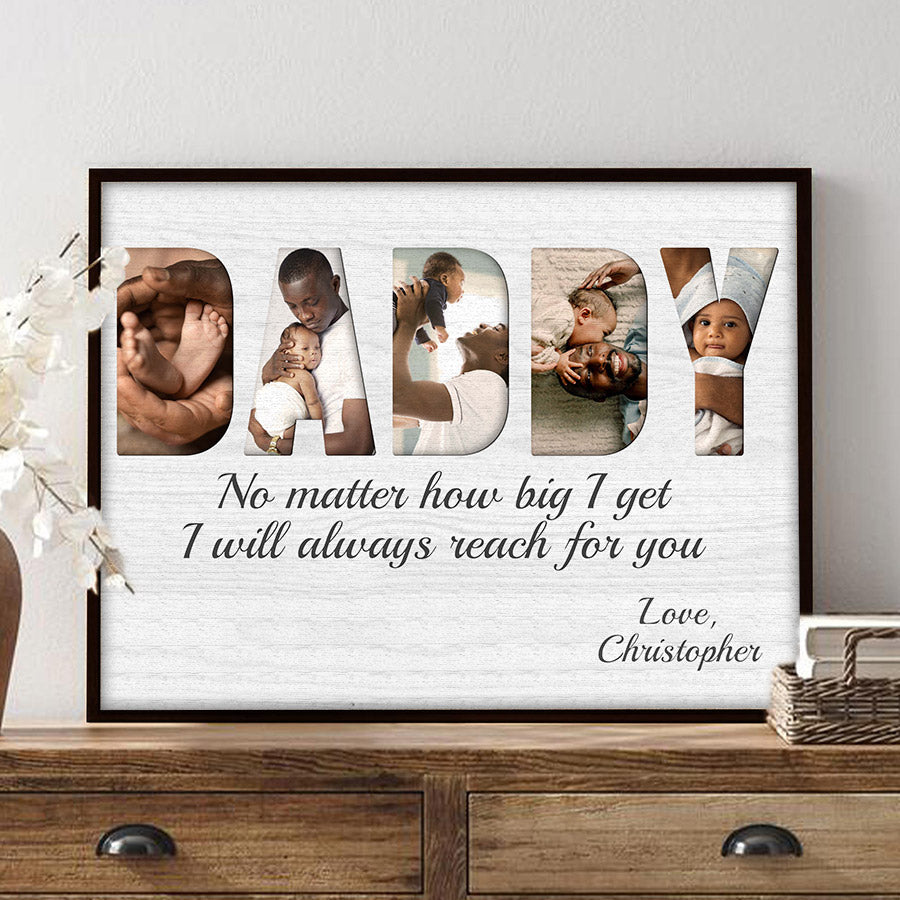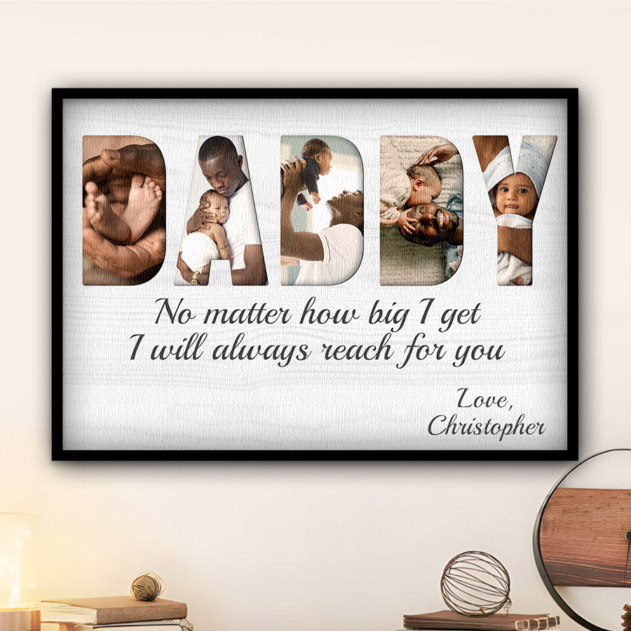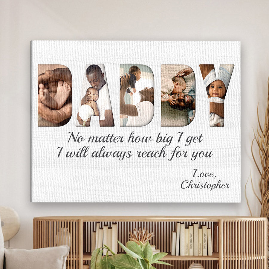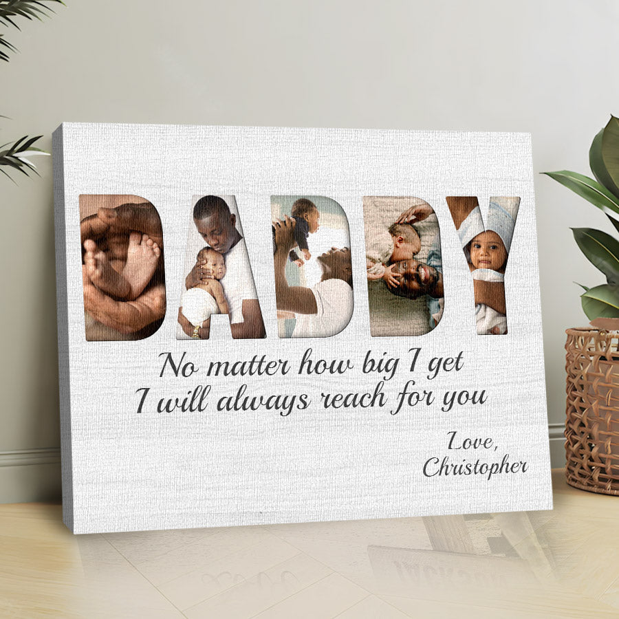 Treat the new dad in your life to black dad father’s day gift | 1st fathers day gift | fathers day gift for african american dad that commemorates the baby's arrival and his first Father's Day. Our personalized photo canvas is sure to bring a smile seeing little ones grow up before their eyes. Customize it FREE now - he will love displaying this treasured memory for many years to come.
