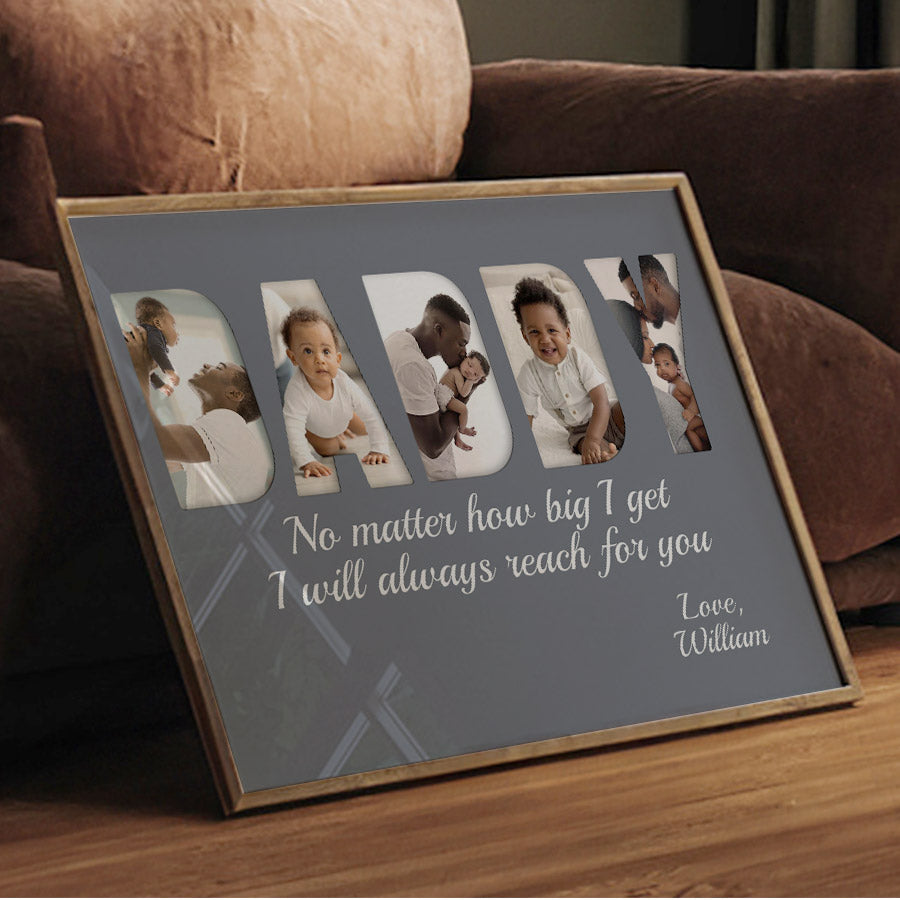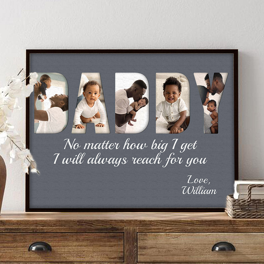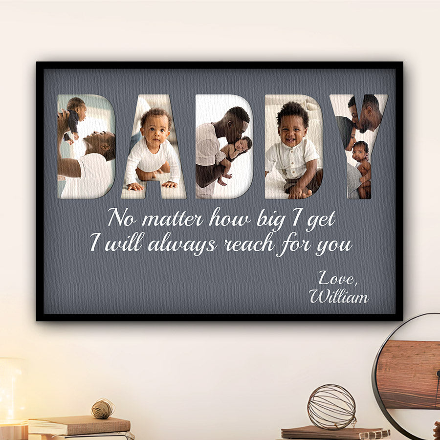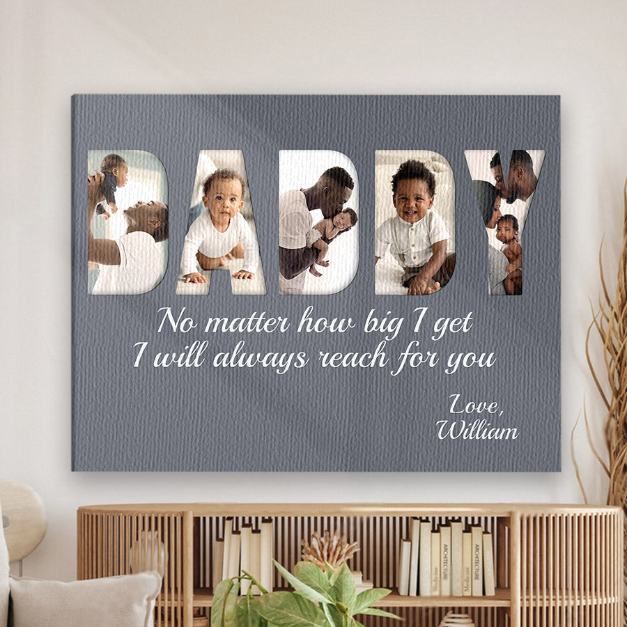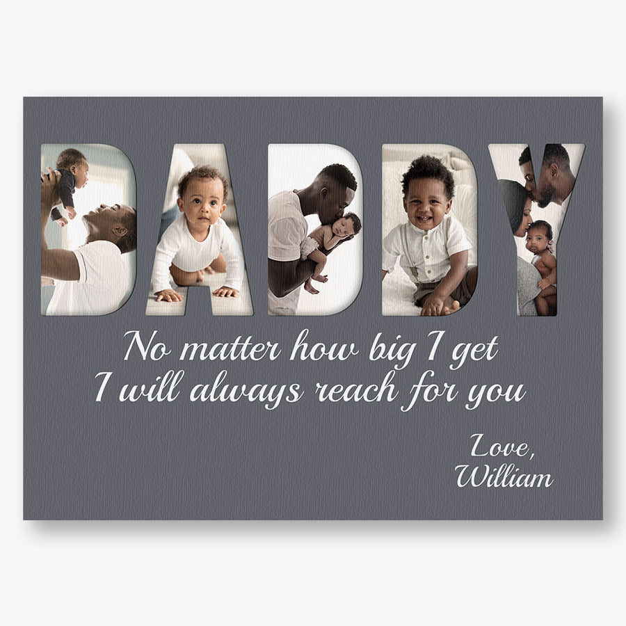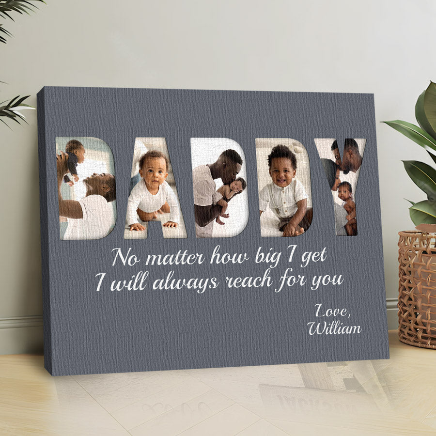 Treat the new dad in your life to black dad father’s day gift | 1st fathers day gift for african american dad | first fathers day gift that commemorates the baby's arrival and his first Father's Day. Our personalized photo canvas is sure to bring a smile seeing little ones grow up before their eyes. Customize it FREE now - he will love displaying this treasured memory for many years to come.