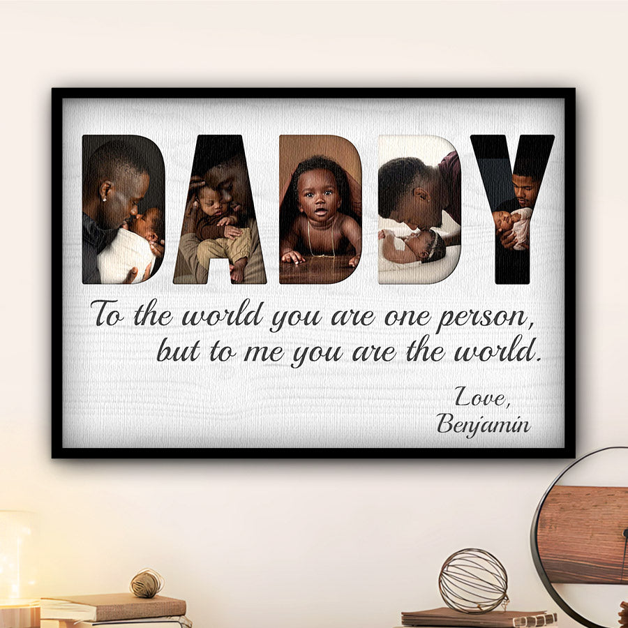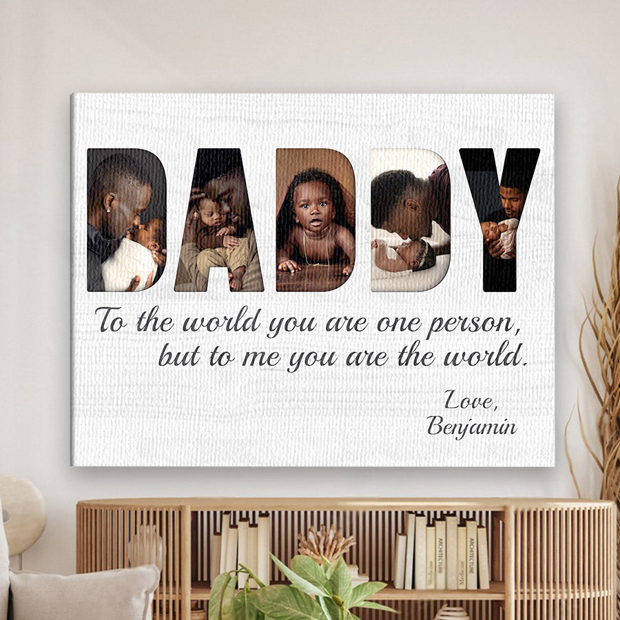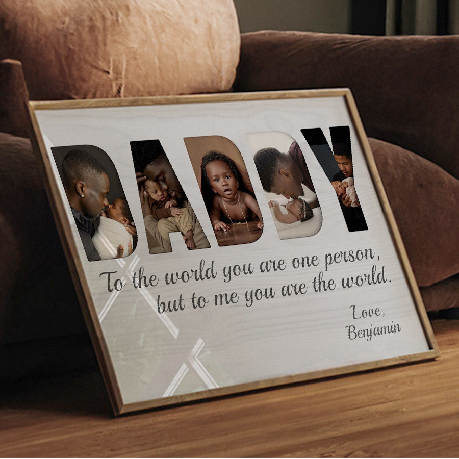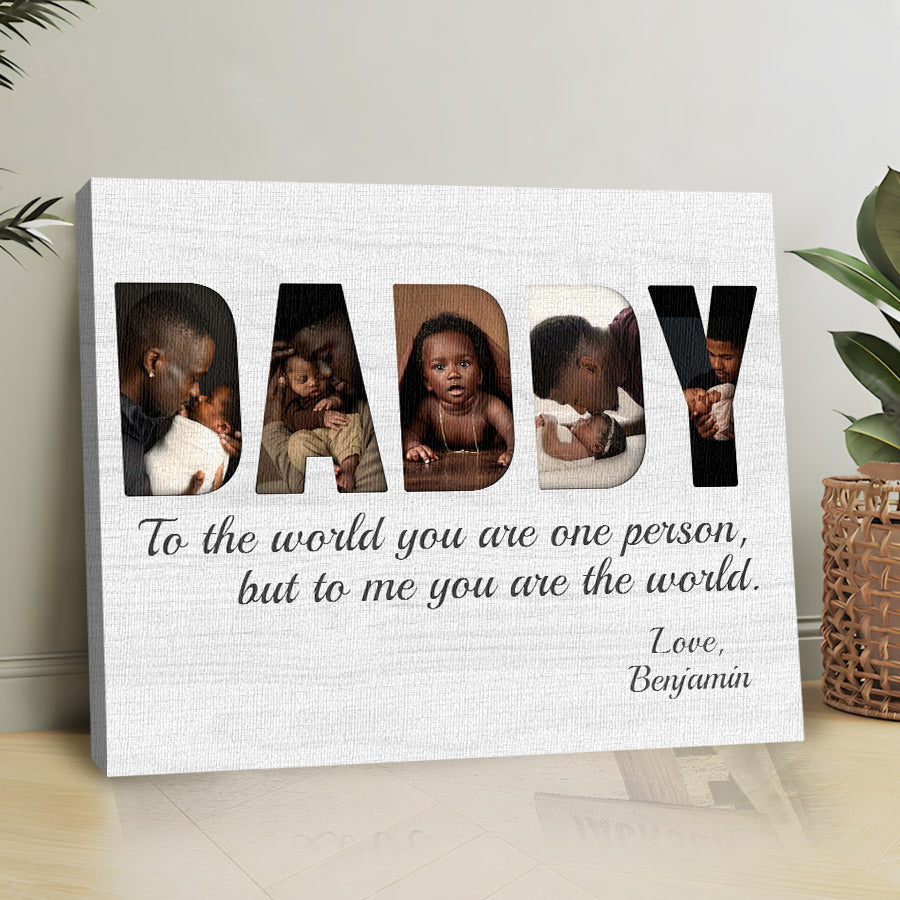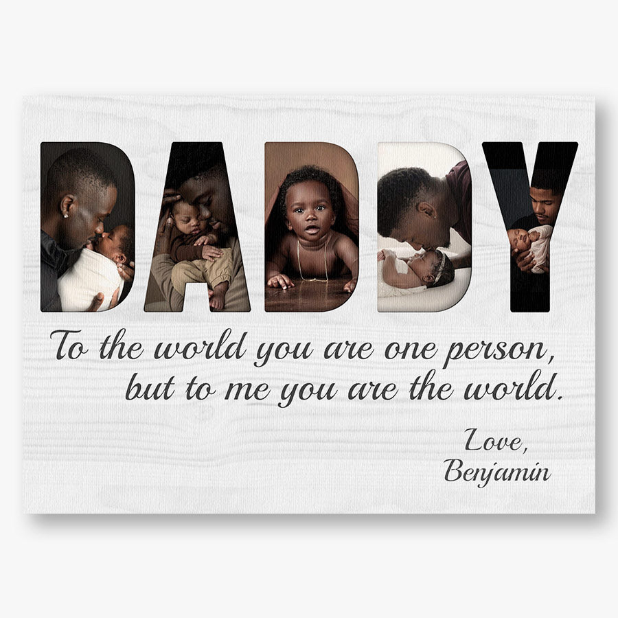 Treat the new dad in your life to black dad first father’s day gift | black dad father’s day gift | 1st fathers day gift that commemorates the baby's arrival and his first Father's Day. Our personalized photo canvas is sure to bring a smile seeing little ones grow up before their eyes. Customize it FREE now - he will love displaying this treasured memory for many years to come.