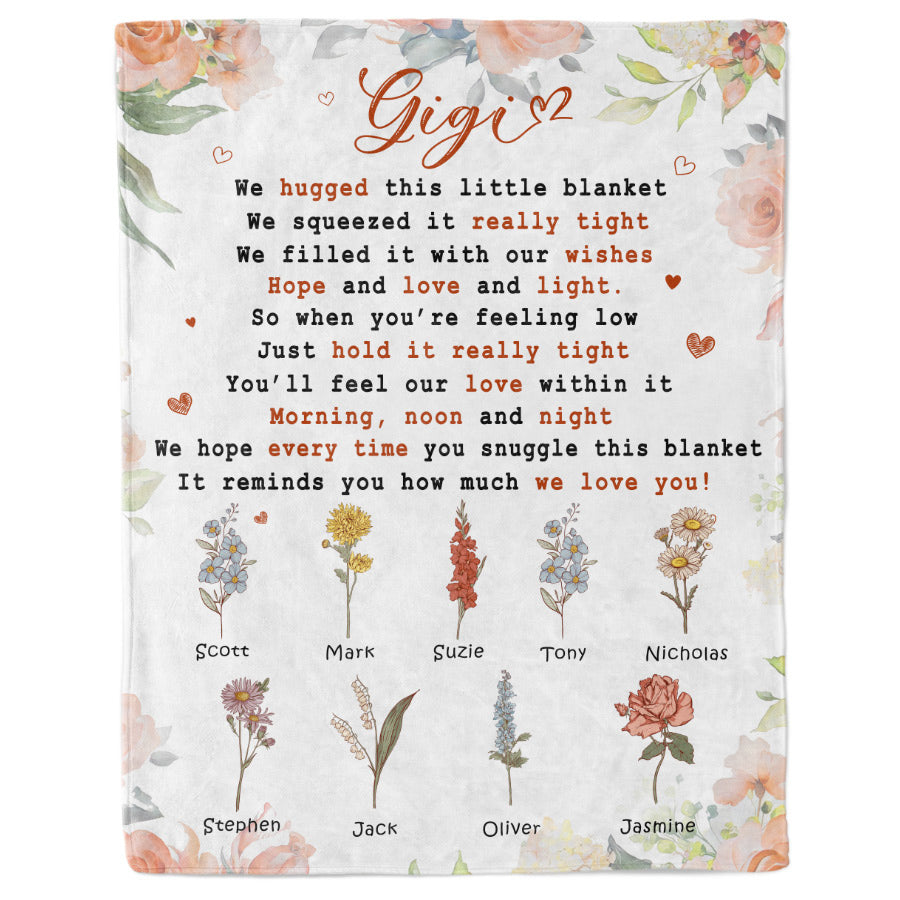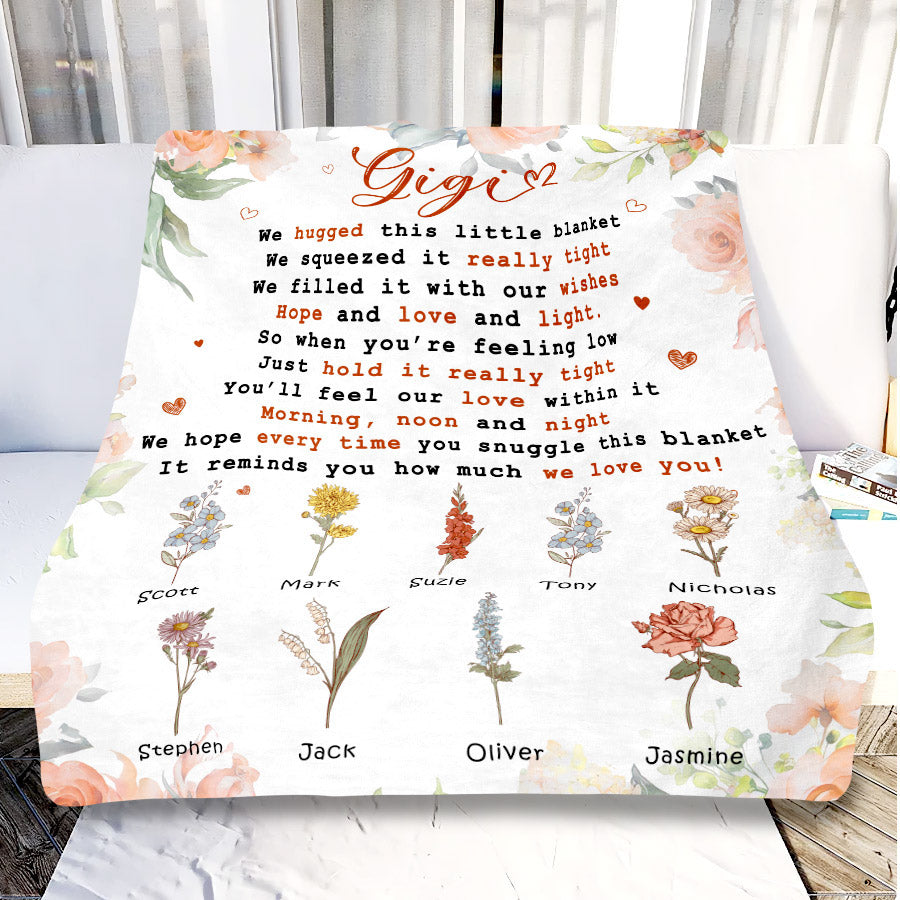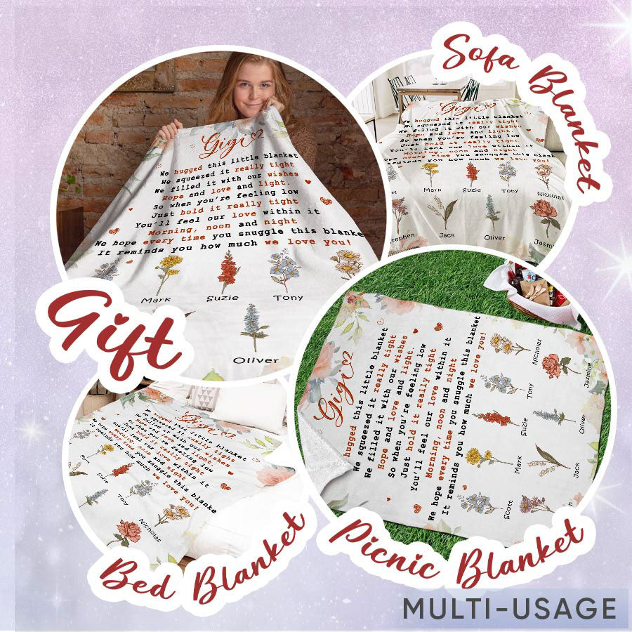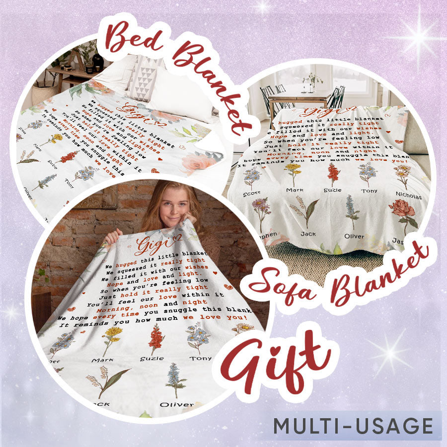 Shop now and create blanket with grandkids names | custom grandma’s garden birth flowers blanket that will bring a smile to her face and warmth to her heart. Give her a gift she'll treasure for years to come. Order your gift today and let your grandma know she holds a special place in your heart.